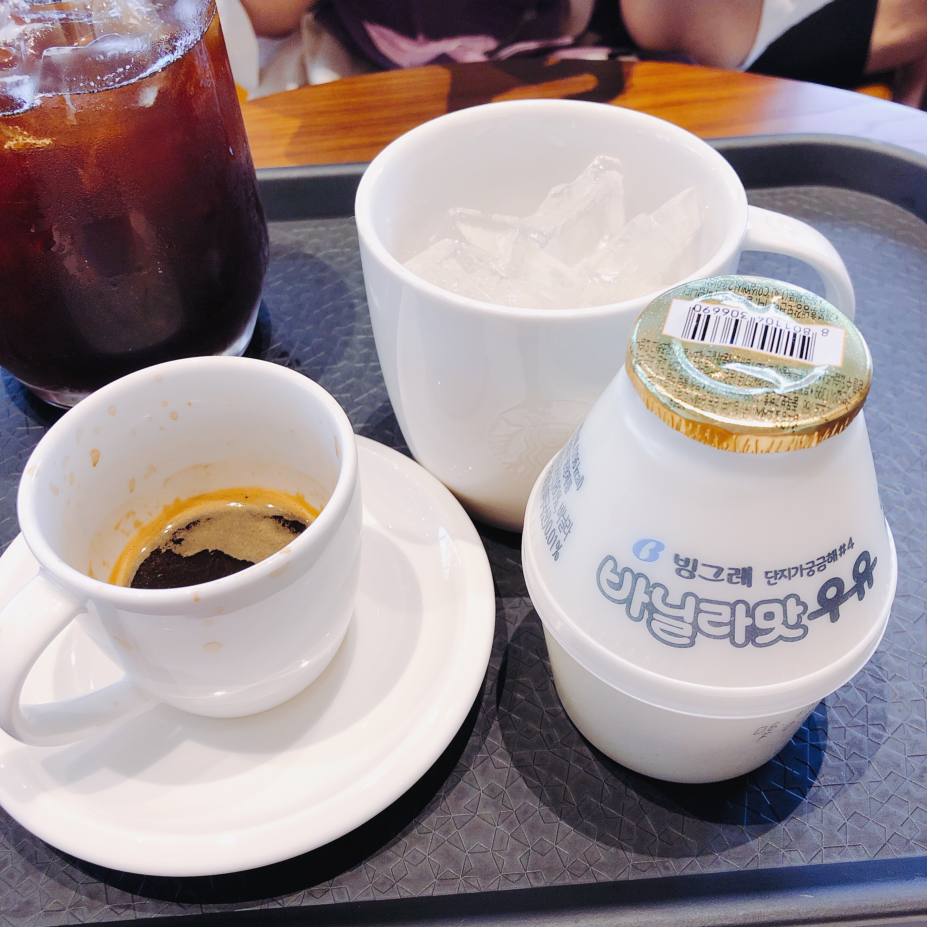 근처 스타벅스에 가서 에스프레소 싱글 샷을 주문했습니다. 그리고 얼음잔은 최대한 불쌍한 표정으로 얼음좀 달라고 하면 흔쾌히 주십니다.