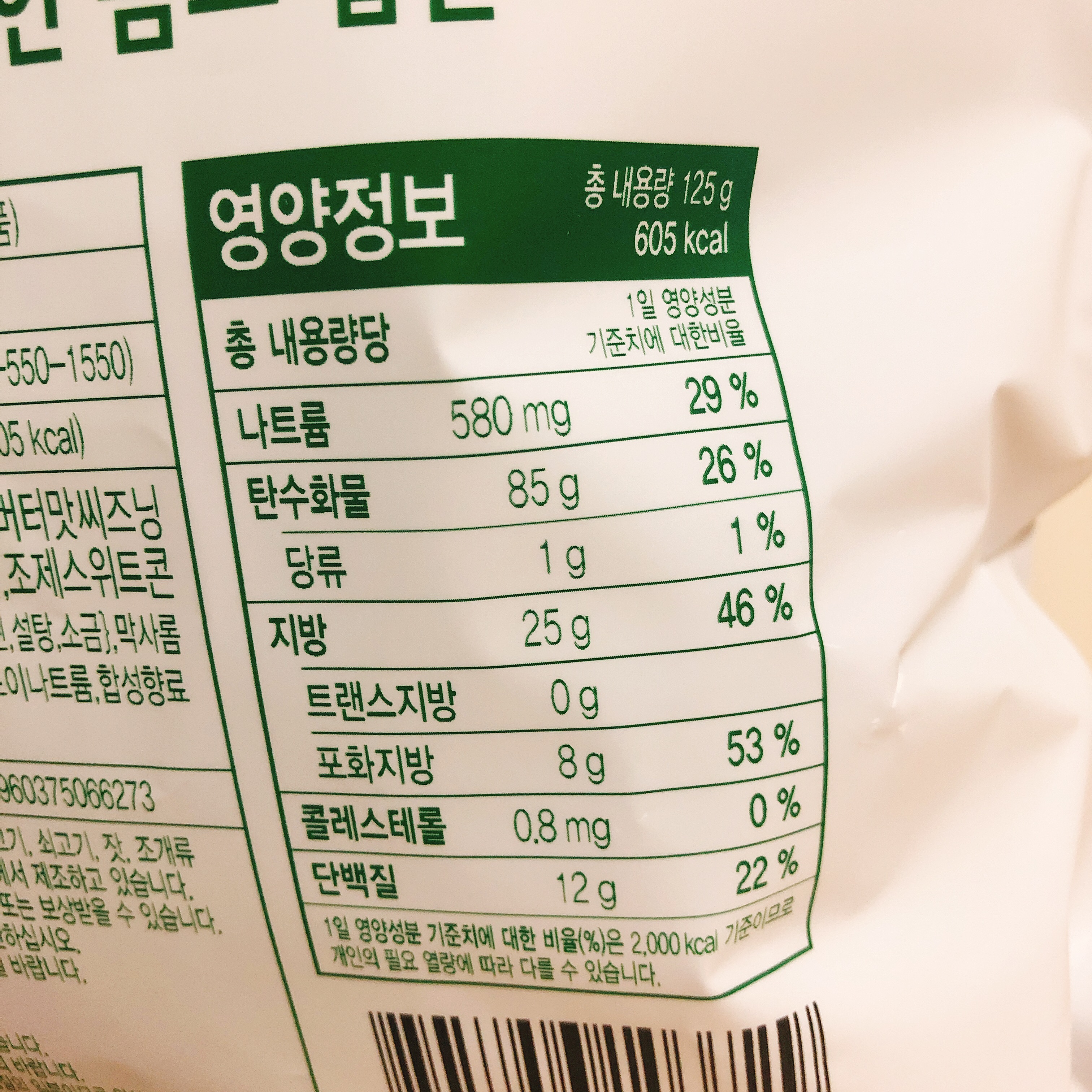 생각보다 꽤 많이 들어있습니다. 질소의 비율이 다른 과자에 비해 상대적으로 낫습니다.