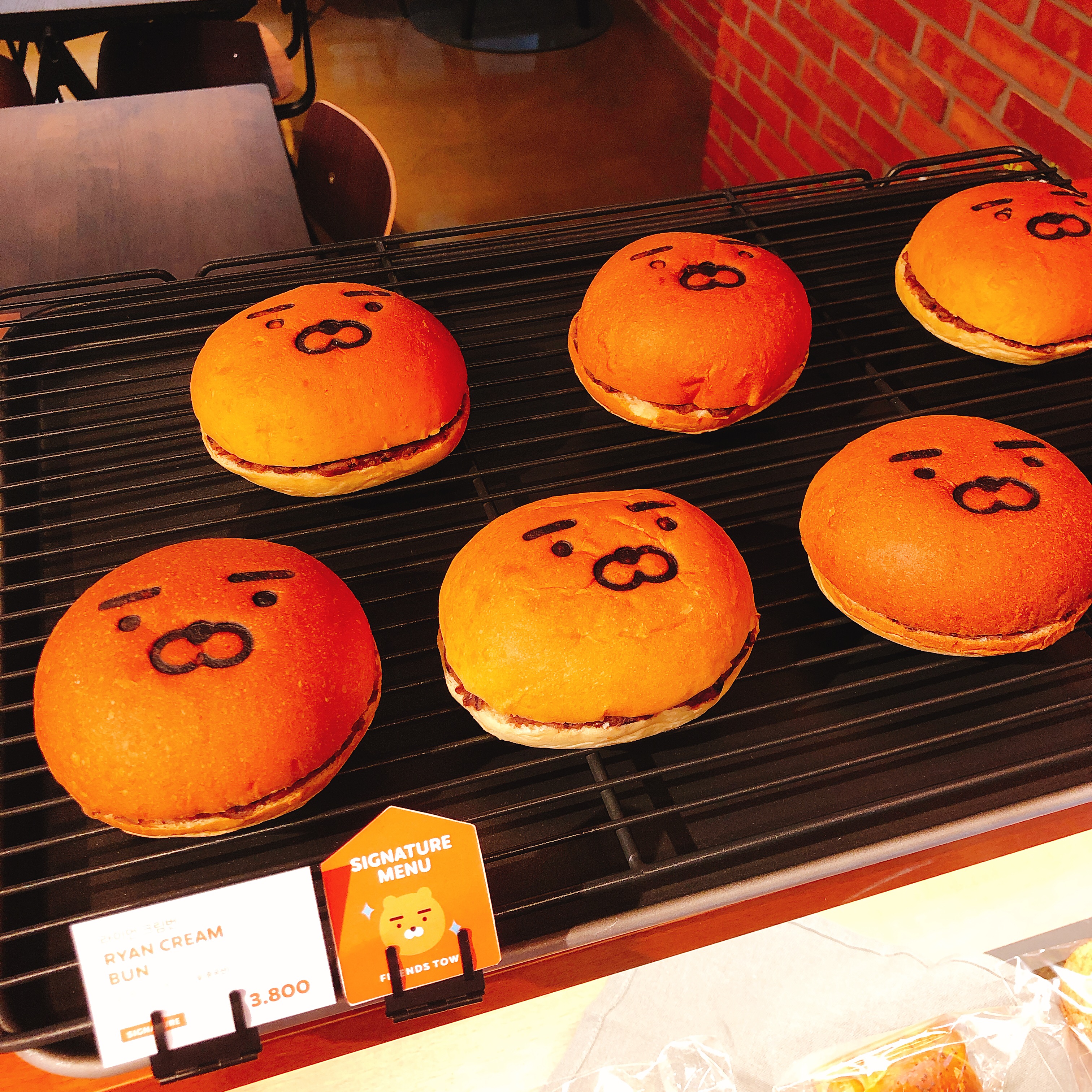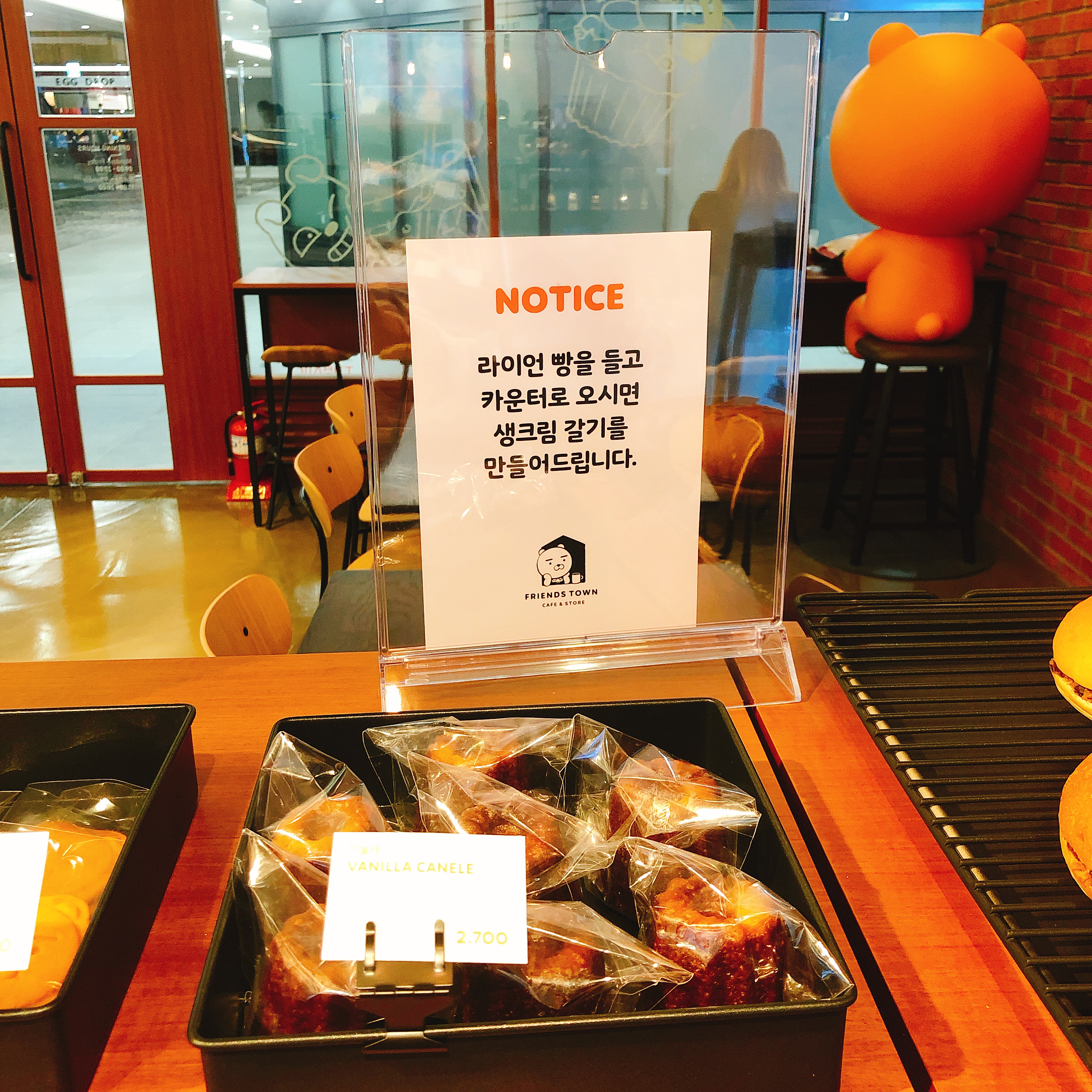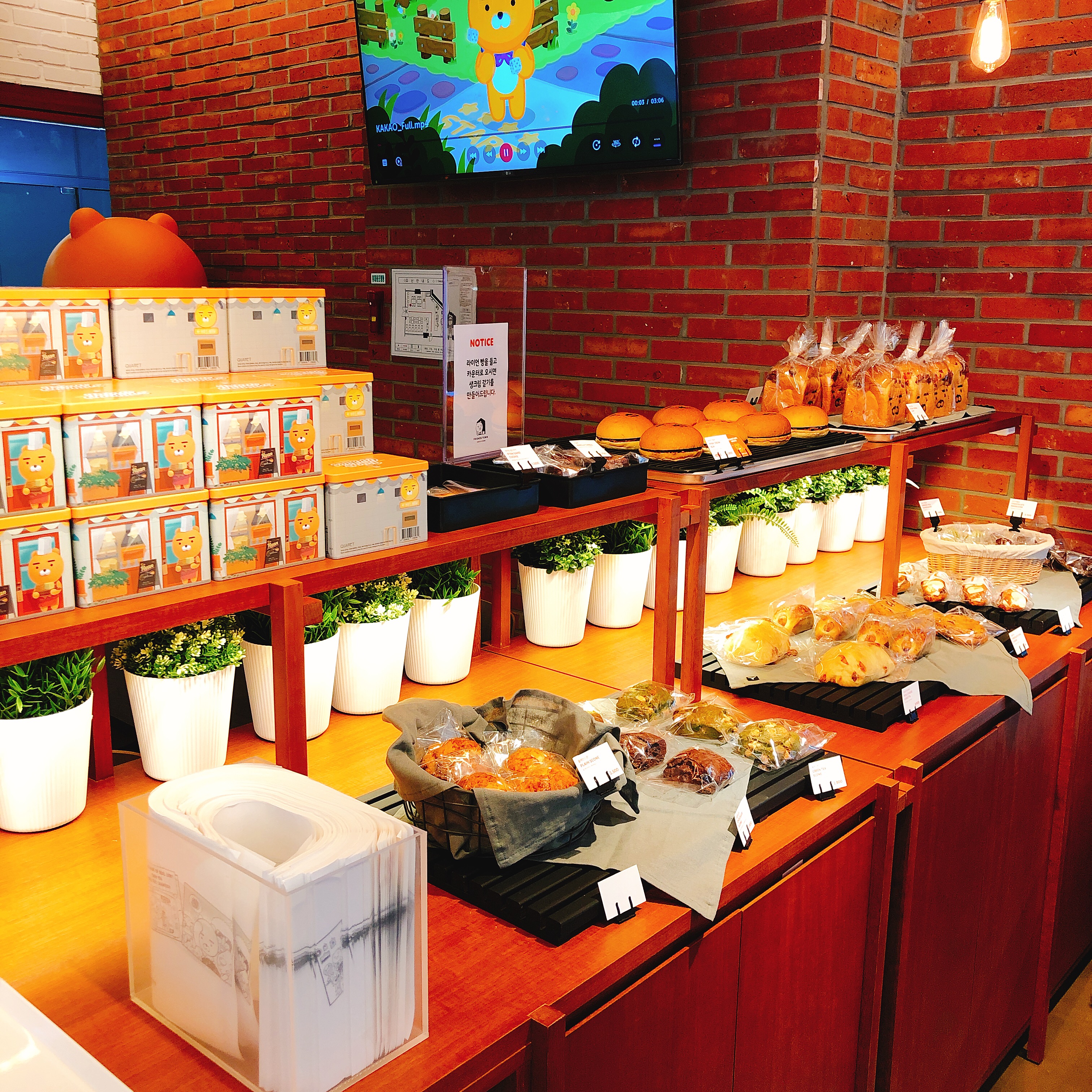 콰르텟 빵들을 판매중입니다. 참고로 콰르텟은 사운즈 한남에 있는 빵집인데요. 카카오 프렌즈와의 콜라보를 통해 강남 프렌즈 스토어 3층에도 입점해 있는 베이커리 입니다. 강남이나 한남동까지 가기 어려운 판교 근처 주민 분들은 이곳에서 라이언 빵들을 맛볼 수 있습니다.