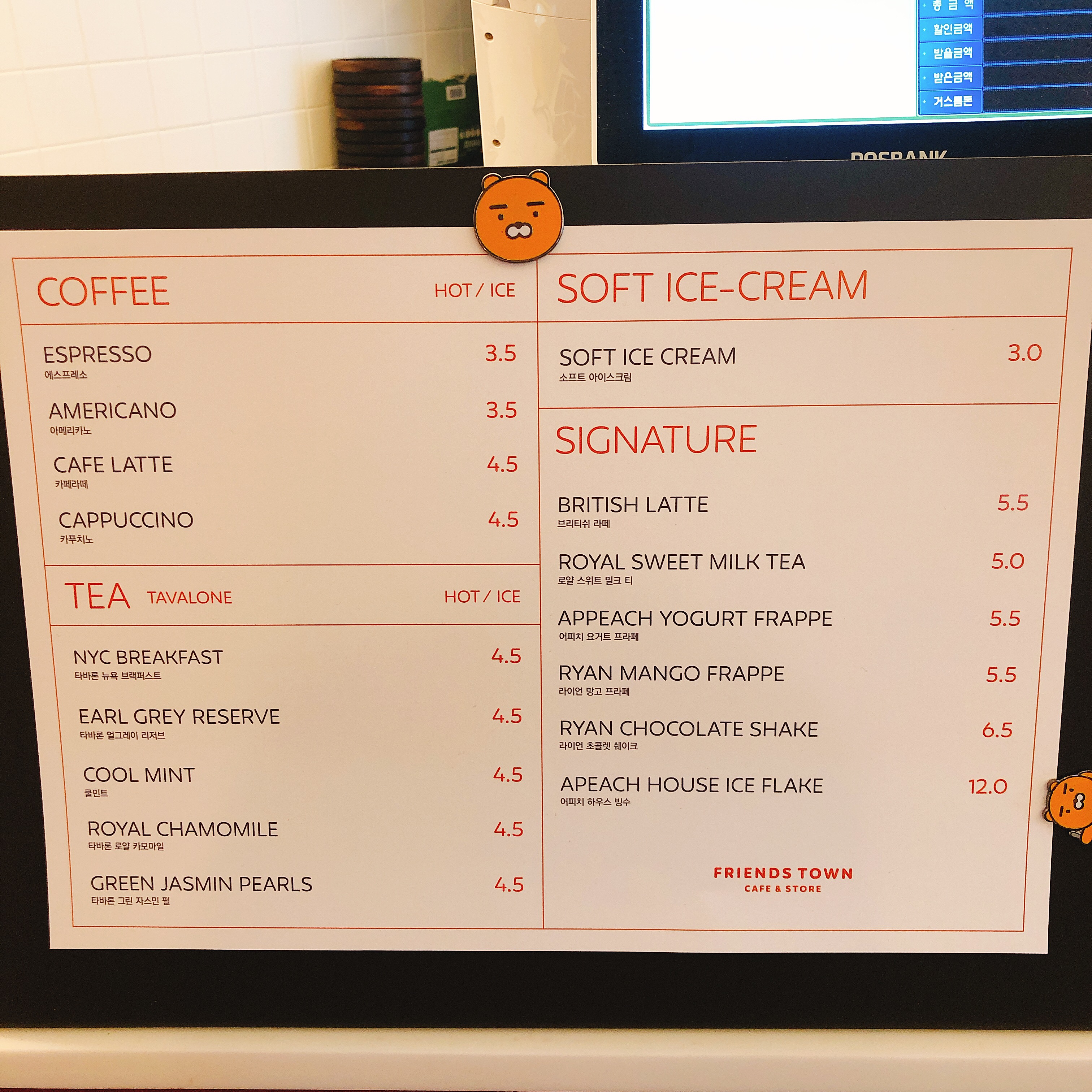 진동벨이 귀엽습니다. 참고로 여기에 다른 프렌즈들보다 라이언이 많은 이유는 아래의 스토리를 보시면 알 수 있습니다.