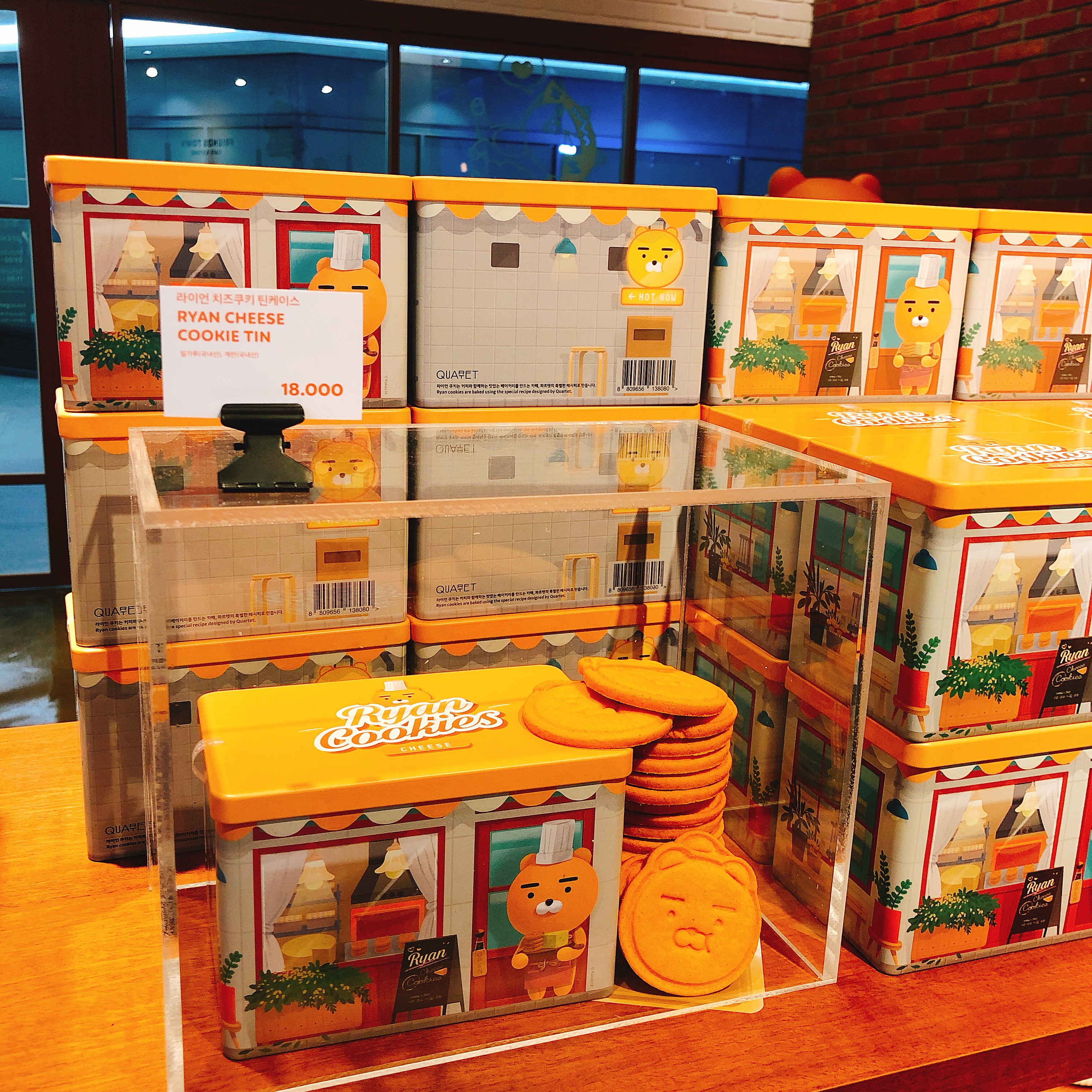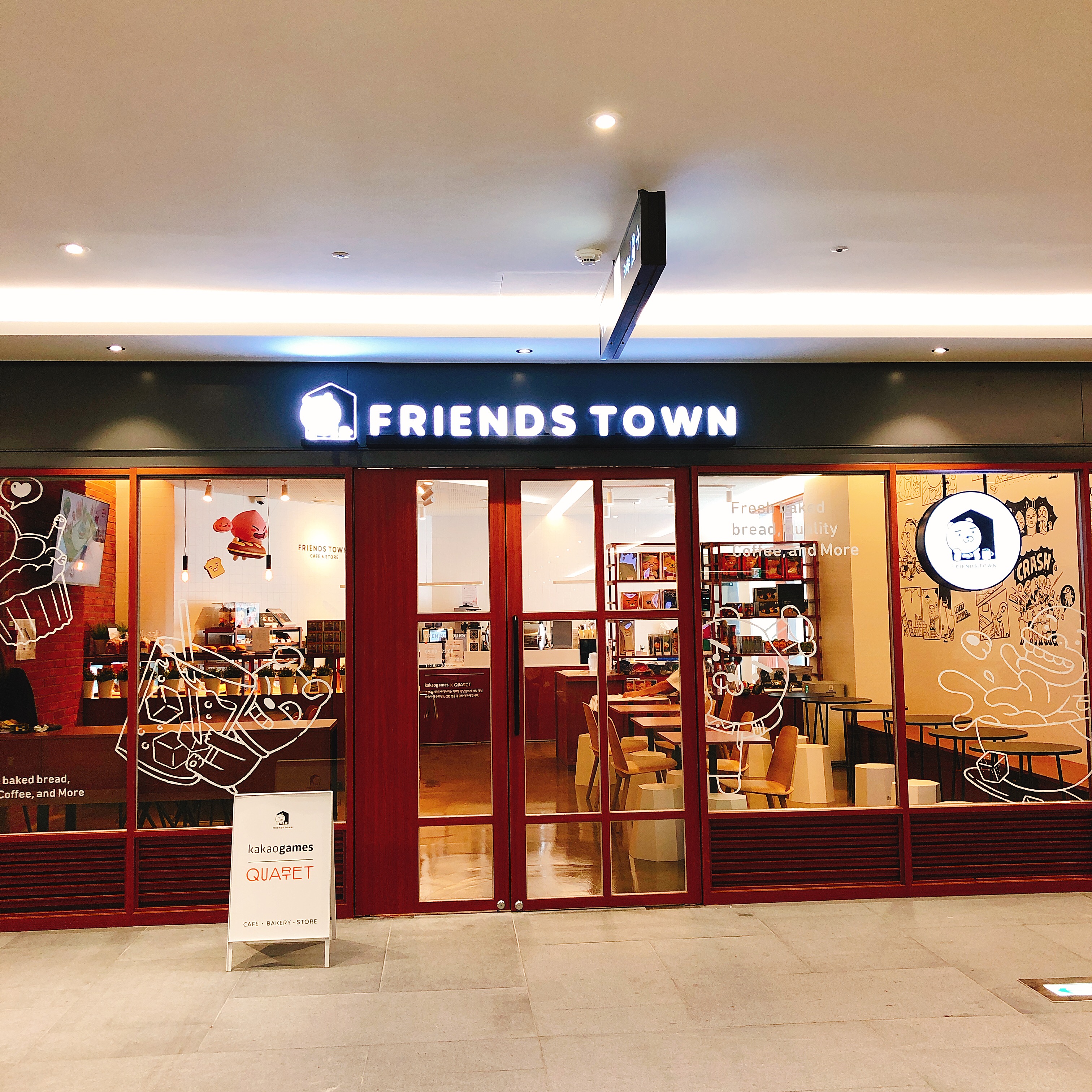 이렇게 생겼습니다. 주말이어서 그런지 아님 아직 홍보가 덜 된건지 모르겠지만 1시쯤 이었음에도 불구하고 손님이 거의 없었습니다. 앞에 "kakao games", "quartet" 이라는 입간판이 서있는데요. 관련 상품들을 판매중이기 때문입니다.