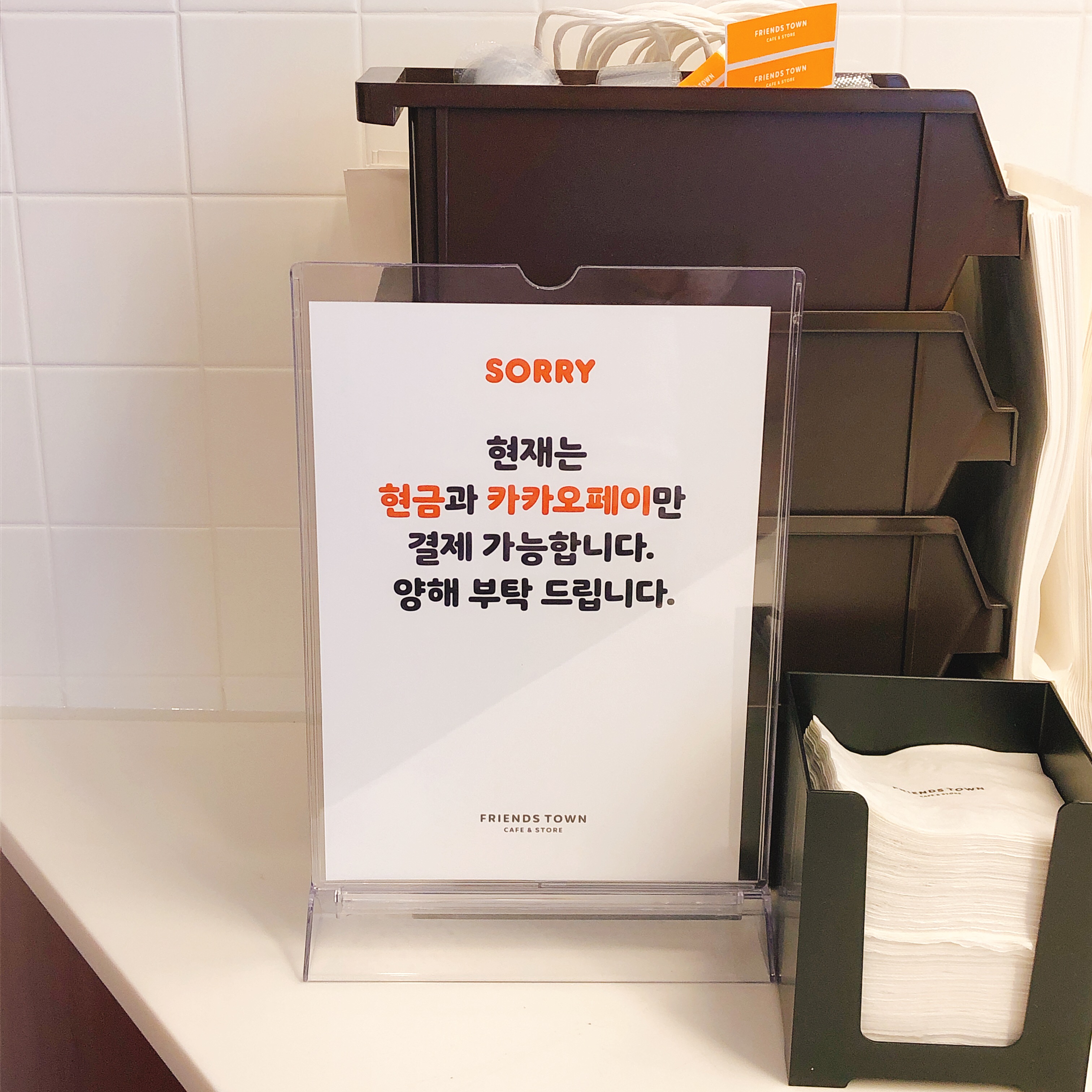 아직 오픈 초기라 그런지 결제 인프라 세팅이 좀 덜된것 같습니다. 그나마 카카오 계열사여서 그런지 카카오페이 만큼은 빠르게 붙여놓았네요. 참고로 이 카페가 위치한 알파돔타워에는 카카오 페이, 카카오 모빌리티, 카카오 게임즈가 위치하고 있습니다. (참고로 카카오 본사와 다른 계열사들은 H스퀘어 혹은 그 근처에 위치하고 있습니다.)