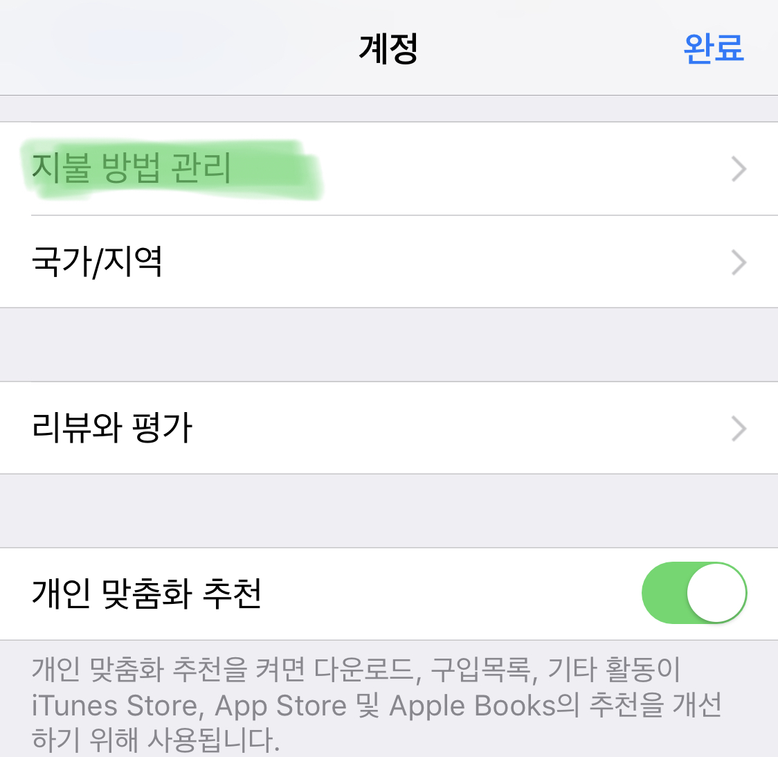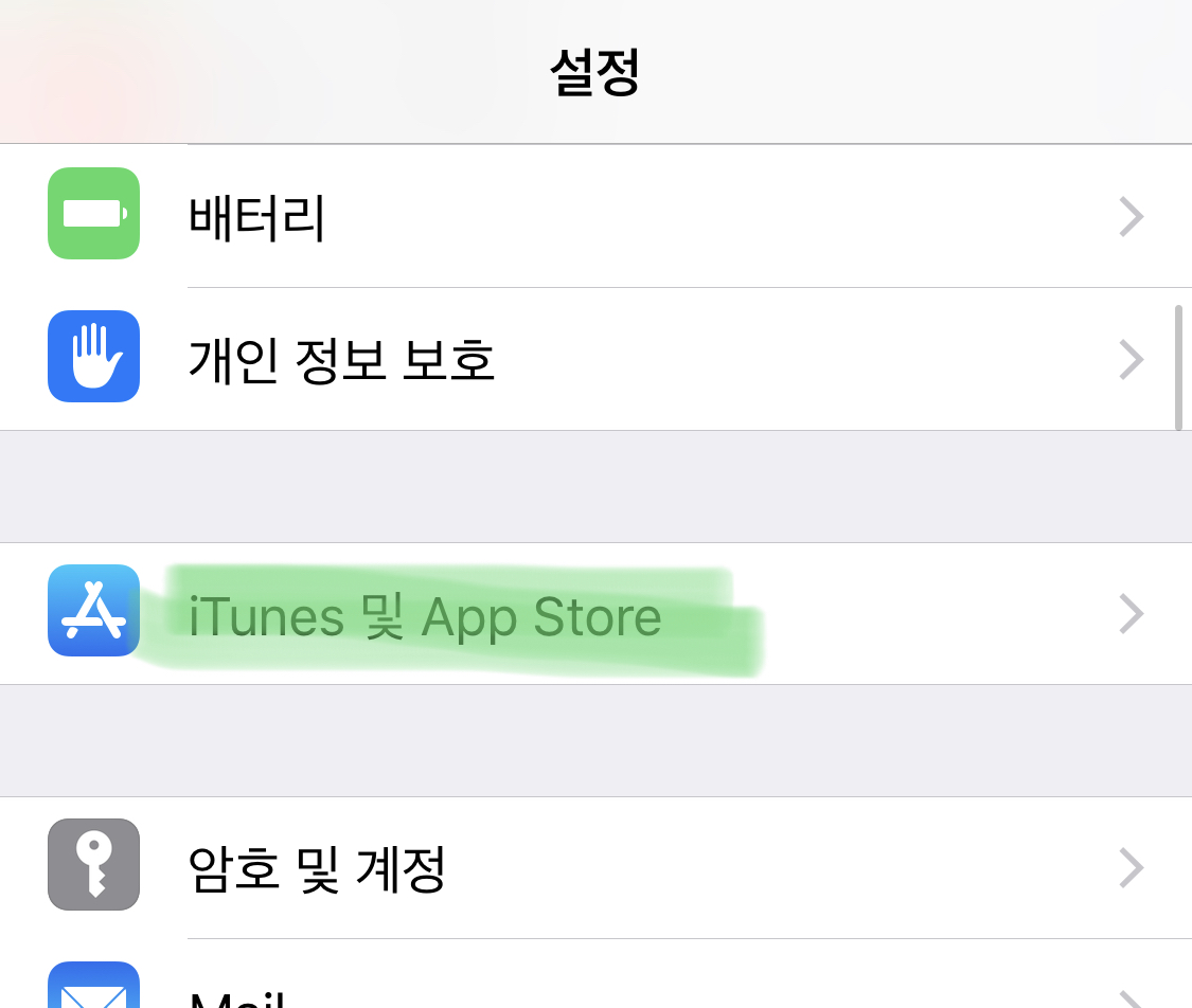 "iTunes 및 App Store"를 선택합니다.