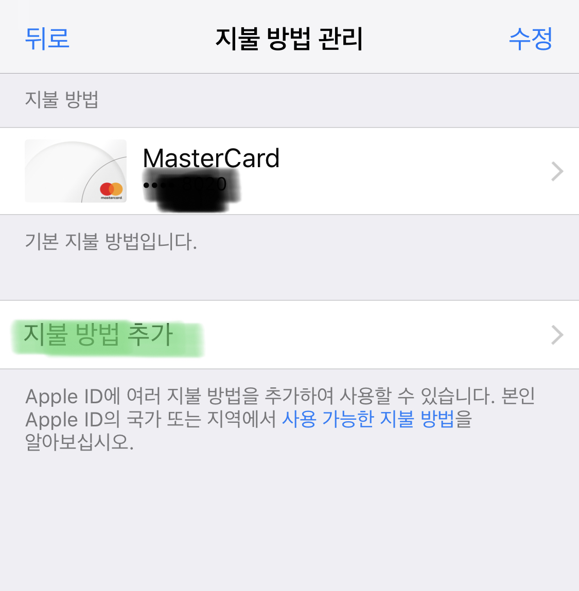 "지불 방법 추가"를 선택합니다.