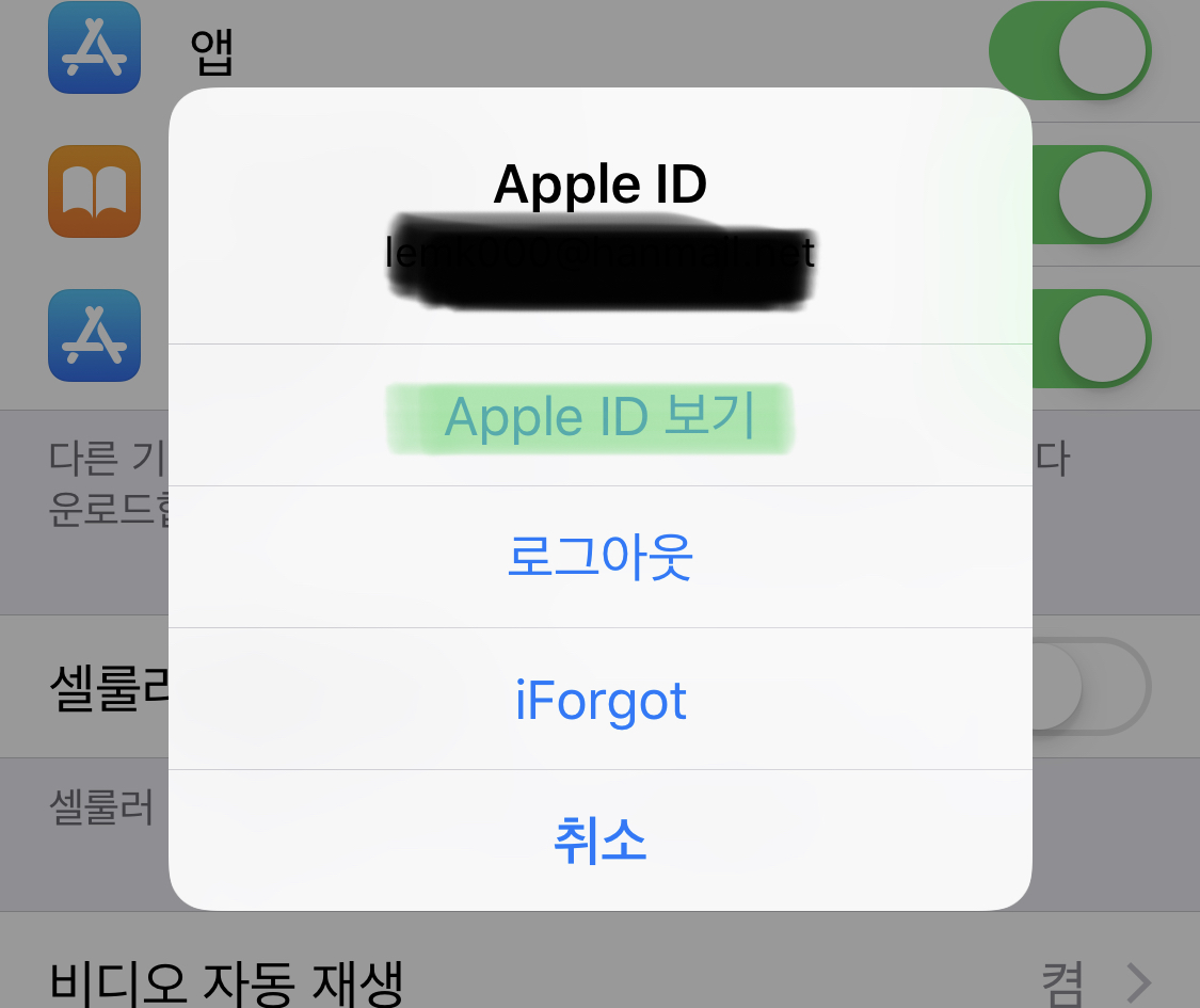 "Apple ID: 계정 이메일"을 선택합니다.