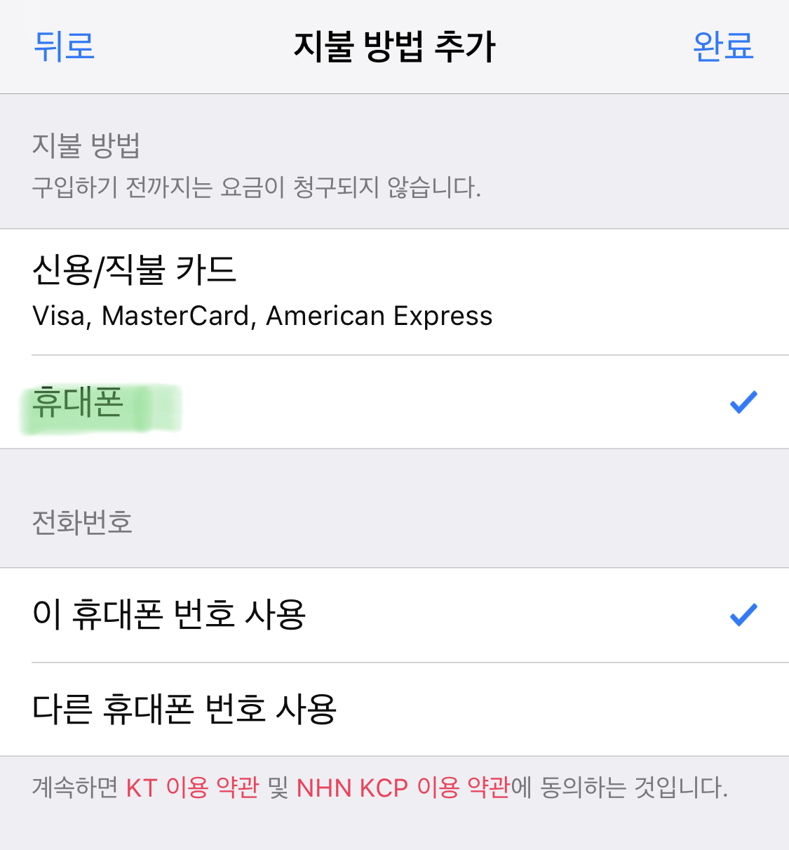 - 만약 휴대폰 결제가 비활성화 되어있다면 반드시 통신사 가입정보를 확인하여 풀도록 하자.