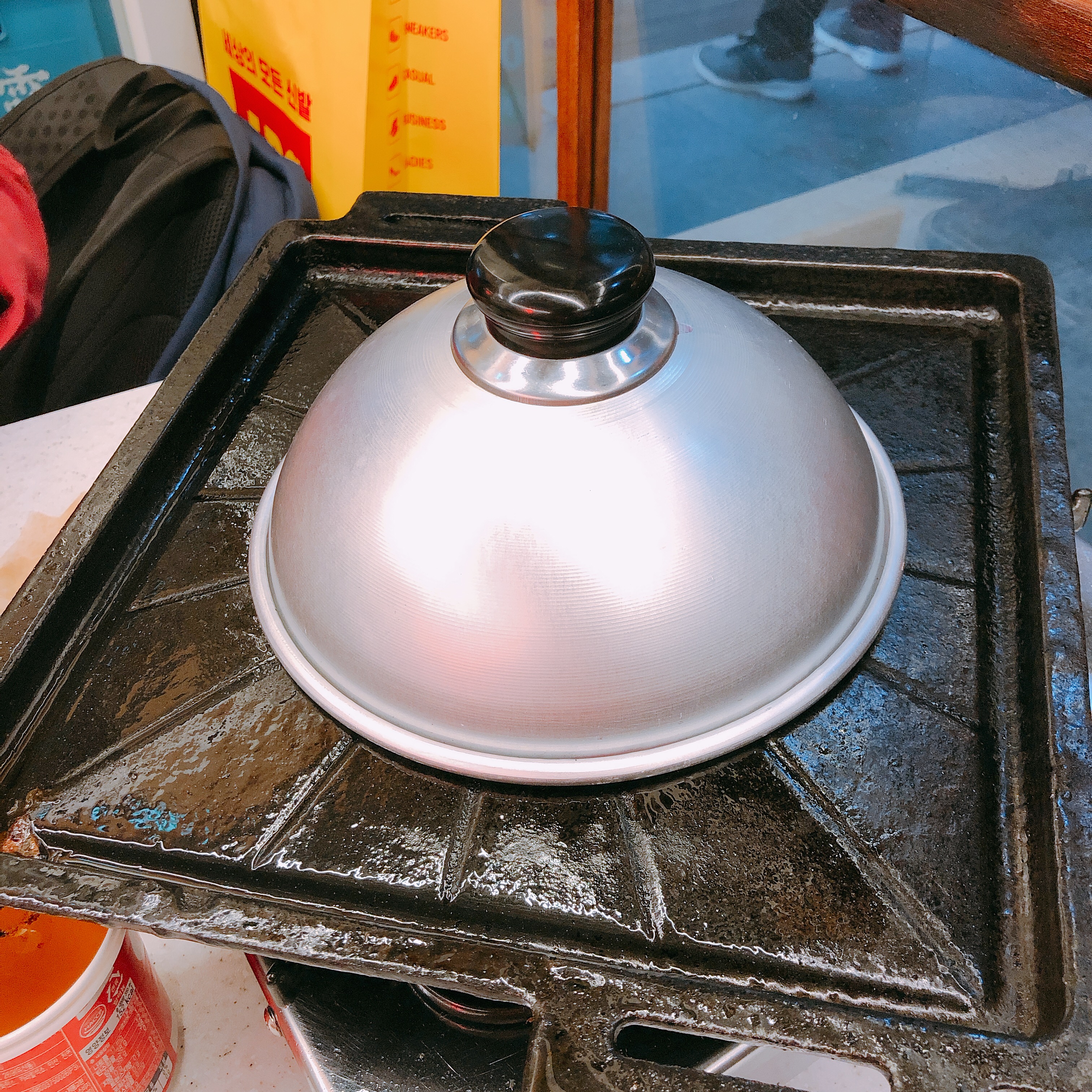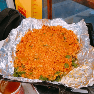 볶음밥을 주문하면 호일을 밑에 깐채로 밥을 올려주는데요. 그 후 호일을 밥에 감싸고 저렇게 뚜껑을 덮어줍니다. 한 5분정도 후에 뚜껑을 벗겨주셨습니다.