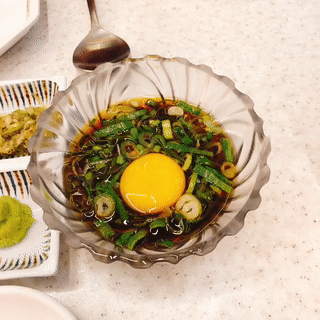 특이한 소스가 있는데요. 바로 간장 베이스 소스에 계란 노른자가 올라간 소스입니다. 저렇게 터트려서 휘저어 먹었습니다. 일단 맛있긴 한데요. 저는 소금만 찍어 먹는걸 좋아하다보니 큰 감흥은 없었습니다.
