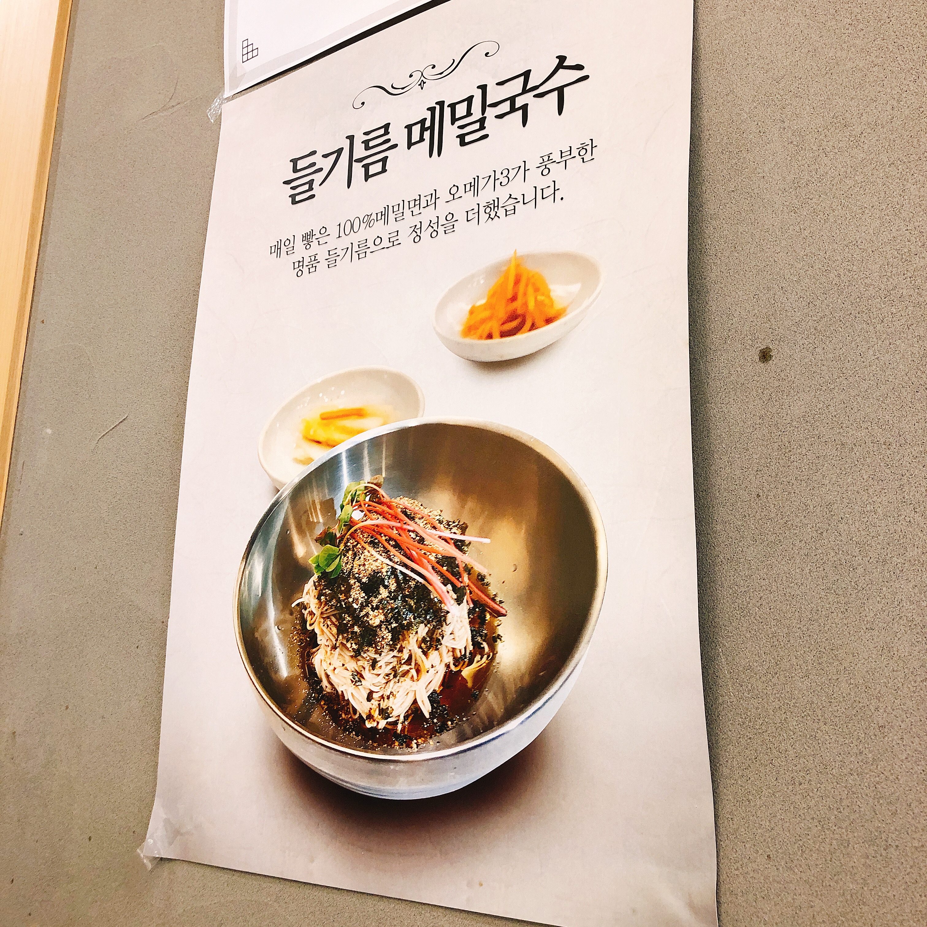 이집의 시그니처 메뉴인 들기름 막국수 입니다. 메밀면에 짭짤한 맛의 양념과 들기름이 첨가되어 있는 특이한 메뉴입니다. 이게 생각보다 굉장히 맛있습니다. 고소한 들기름 향도 솔솔 나고요. 양도 적당합니다. 다만 너무 많이 먹으면 들기름 때문에 약간은 느끼할 수도 있을것 같습니다. 적당히 먹기엔 딱 좋습니다. 왠지 호불호가 명확히 갈릴법한 맛이기도 합니다. 마치 평양냉면 같달까요?