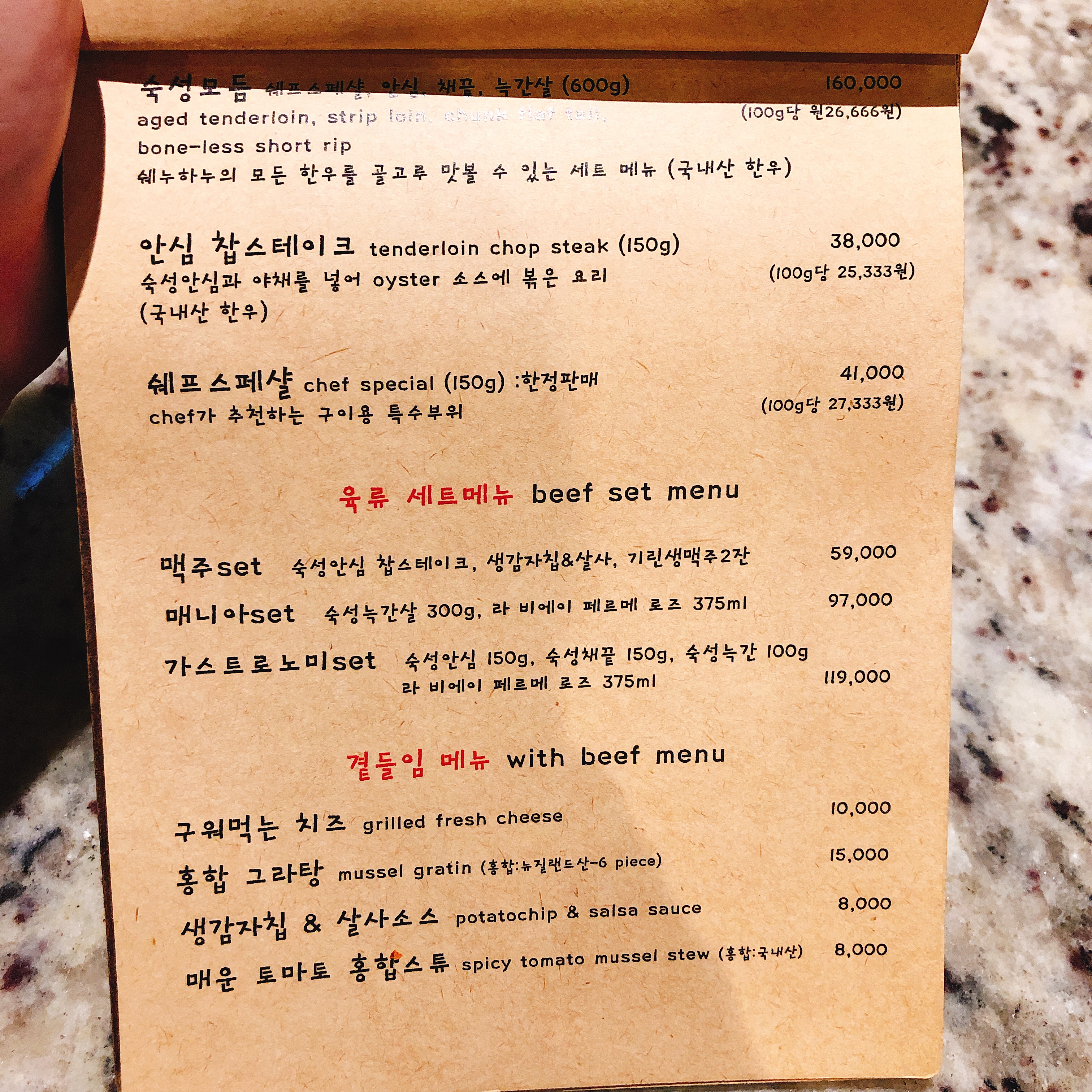 - 우테이블보다는 약간 저렴하다. (글 하단 메뉴판 참고)