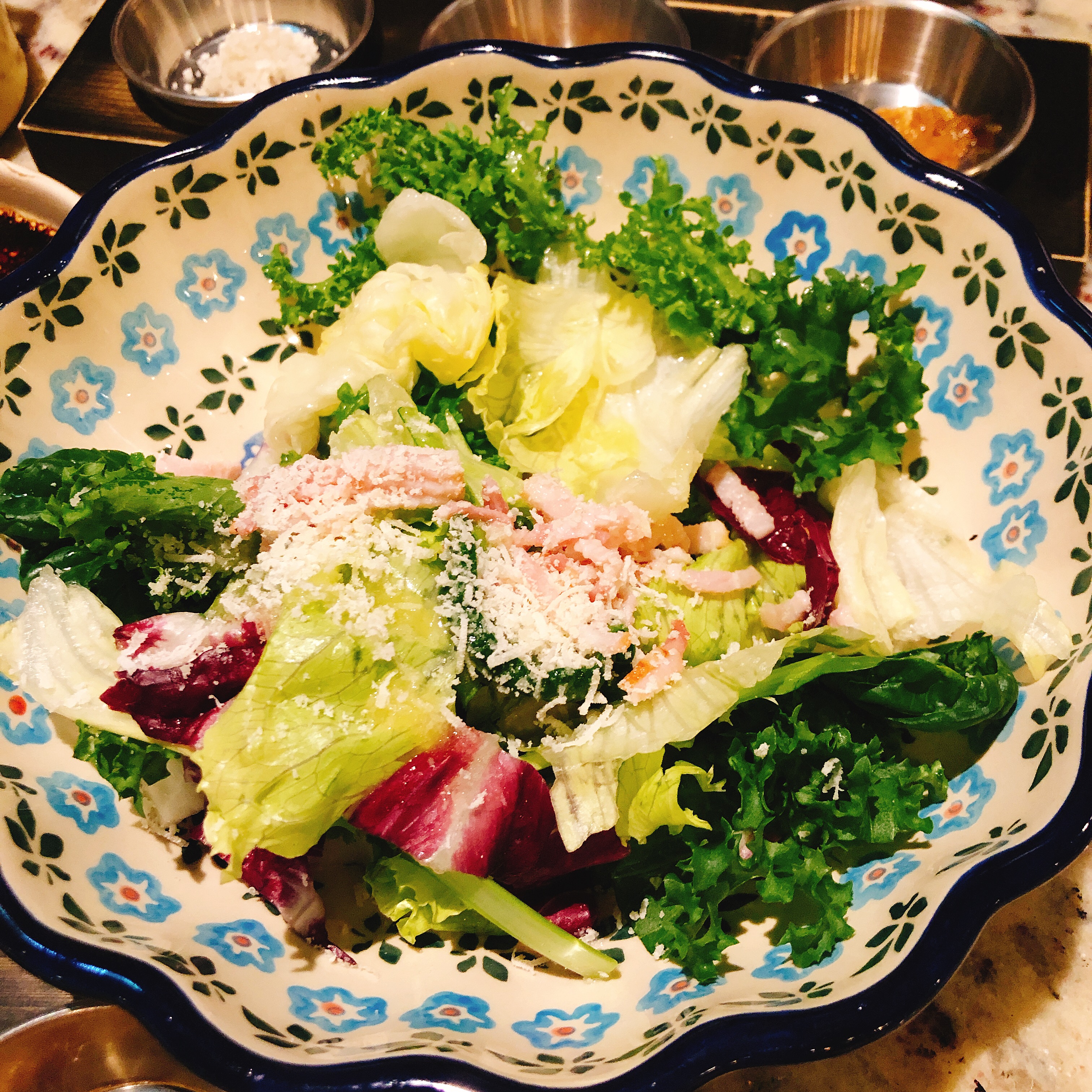 하몽같은게 들어있는 샐러드입니다. 배고파서 이것부터 허겁지겁 해치웠더니 리필해주셨습니다.