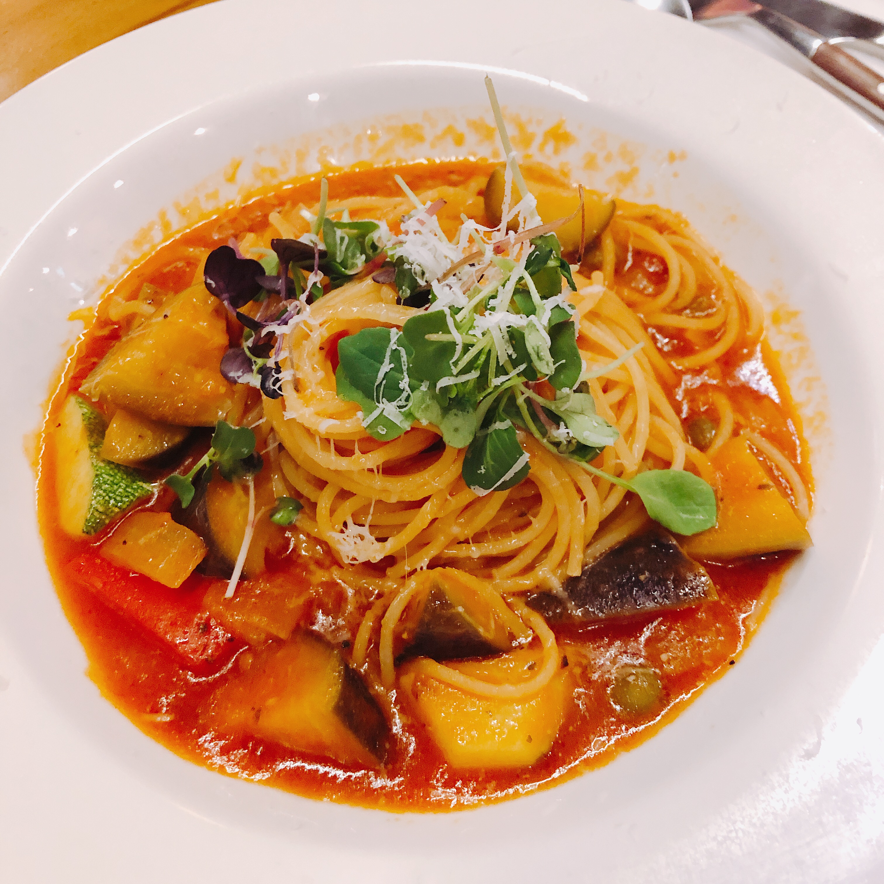 오늘의 토마토 파스타는 가지가 들어가있는 메뉴입니다. 이름을 말씀해주셨는데 까먹었습니다. 참고로 토마토 파스타는 옆에 일행분이 드신 메뉴인데 사진만 찍었습니다.