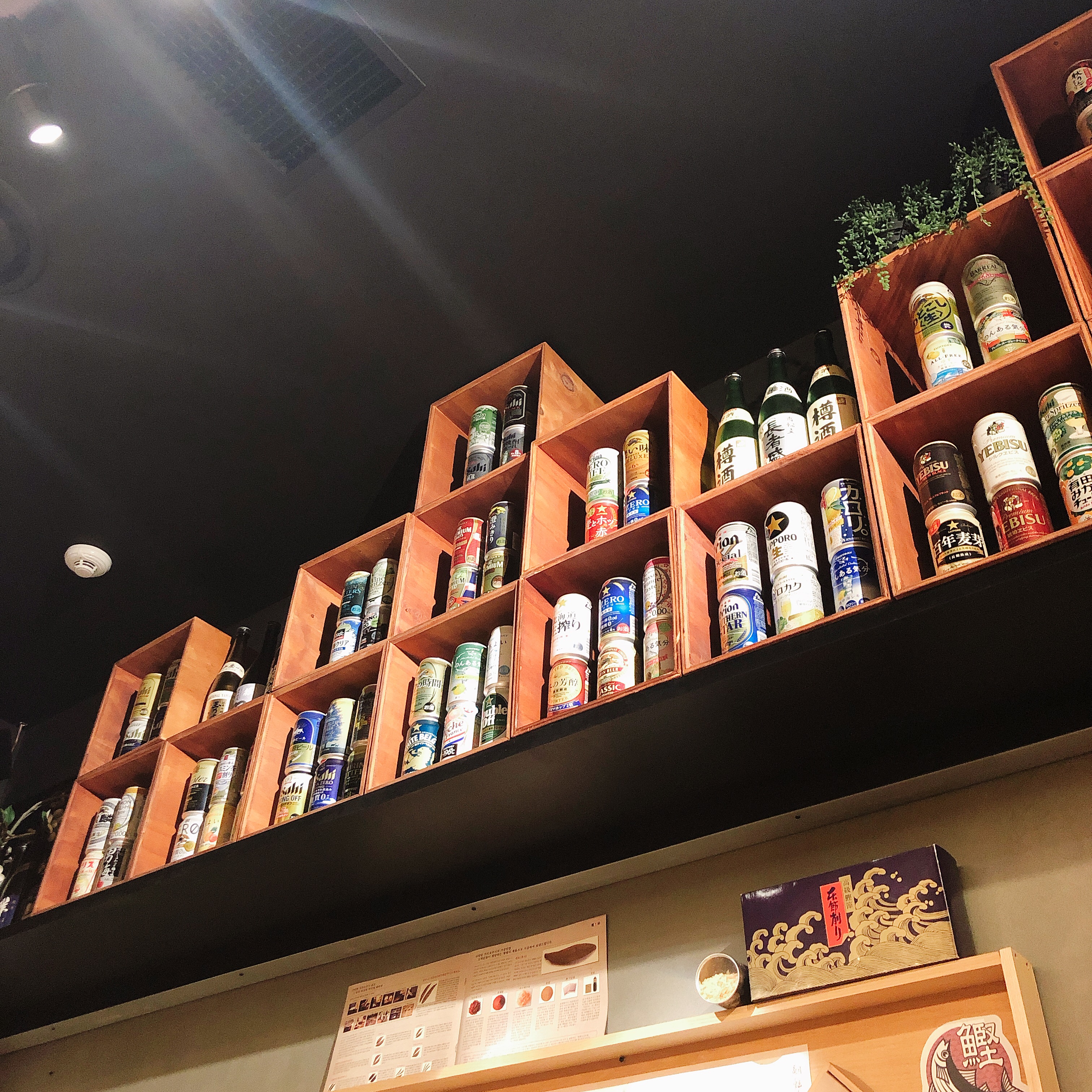일본 맥주 캔을 장식의 도구로 이용한 인테리어입니다. 분위기 있네요.