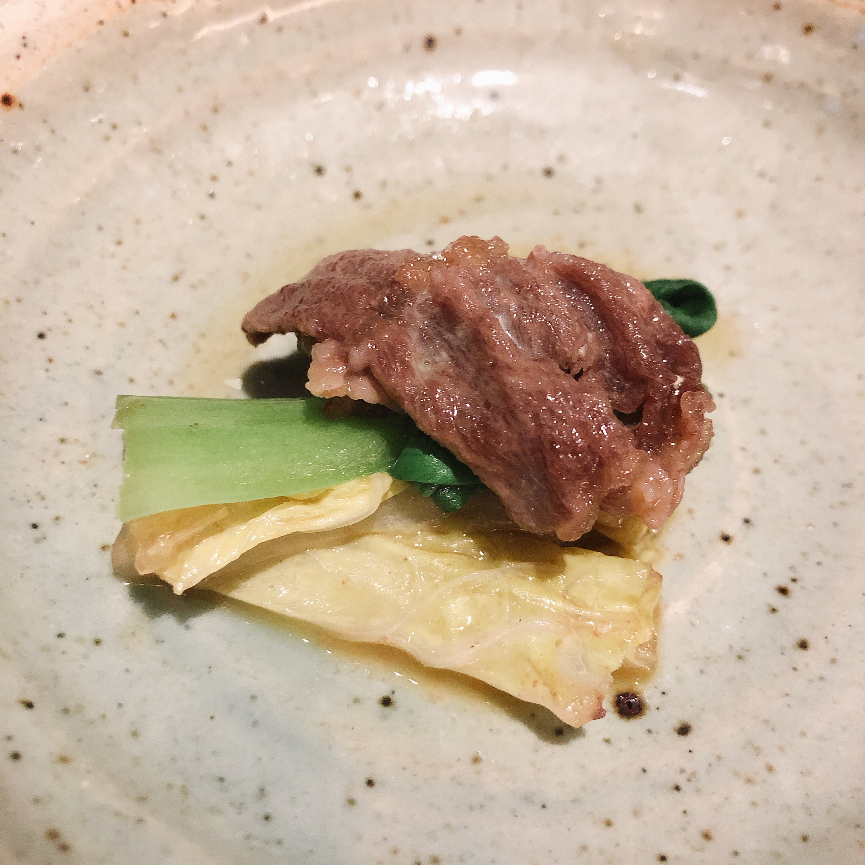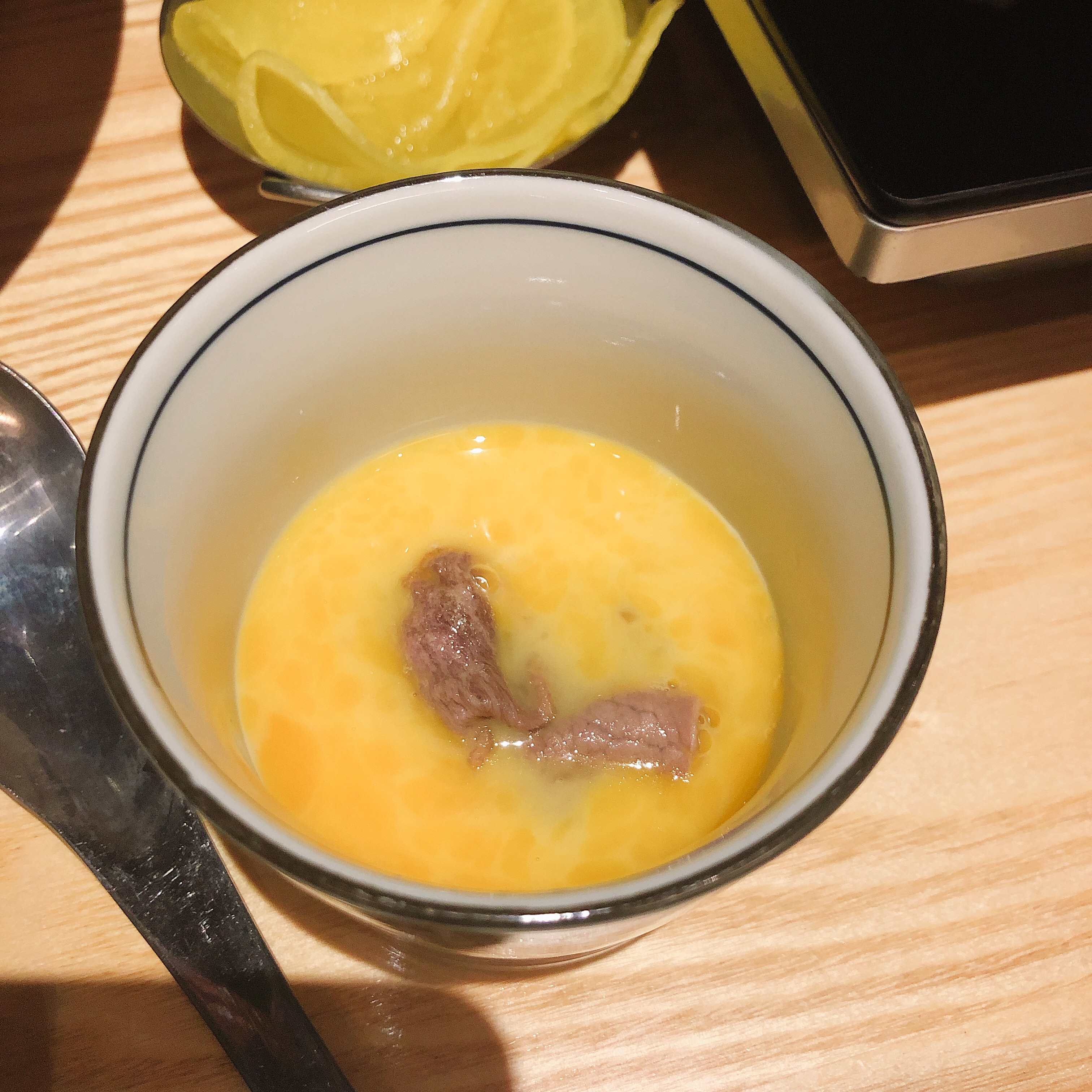날계란을 푹 찍어 먹으니 그 고소함이 배가됩니다. 샤브샤브가 약간 짠 맛이 강한 반면에 스키야키는 달달한 간장을 기본으로 한 육수이기 때문에 단맛이 납니다. 맛있습니다.