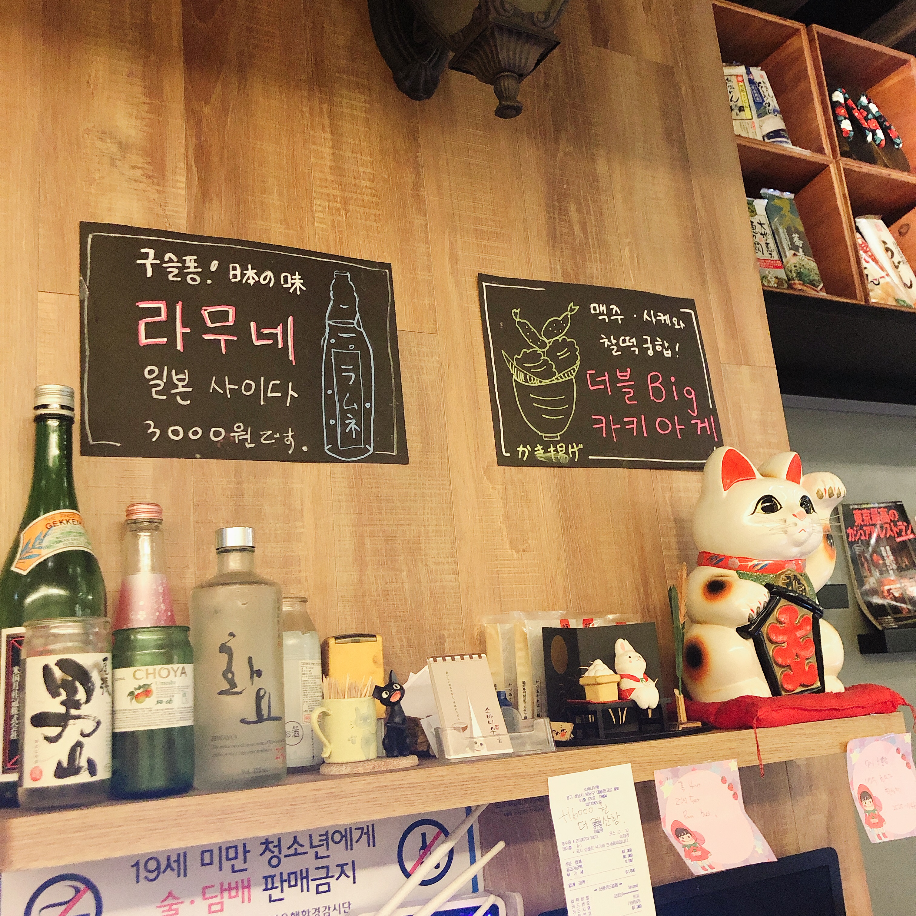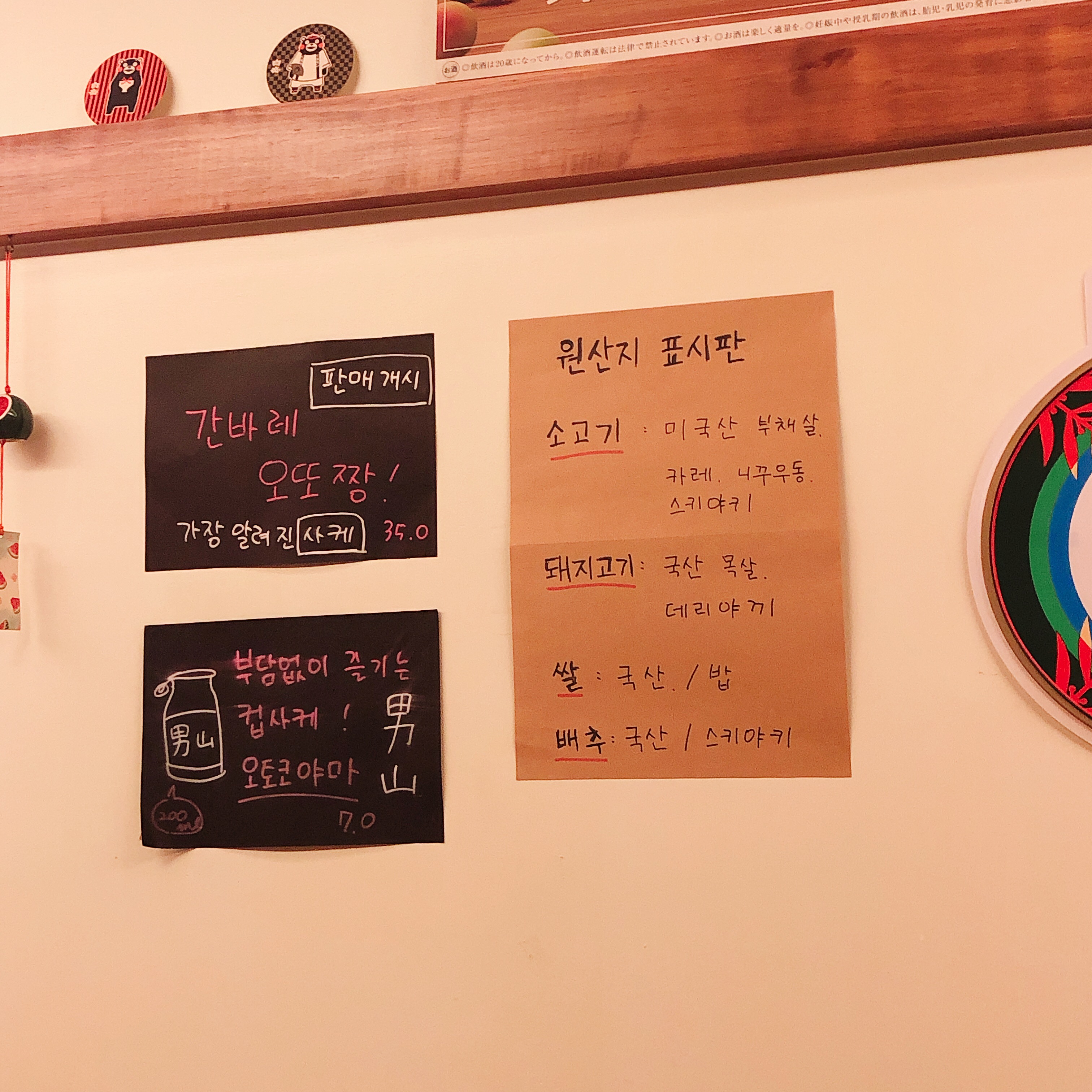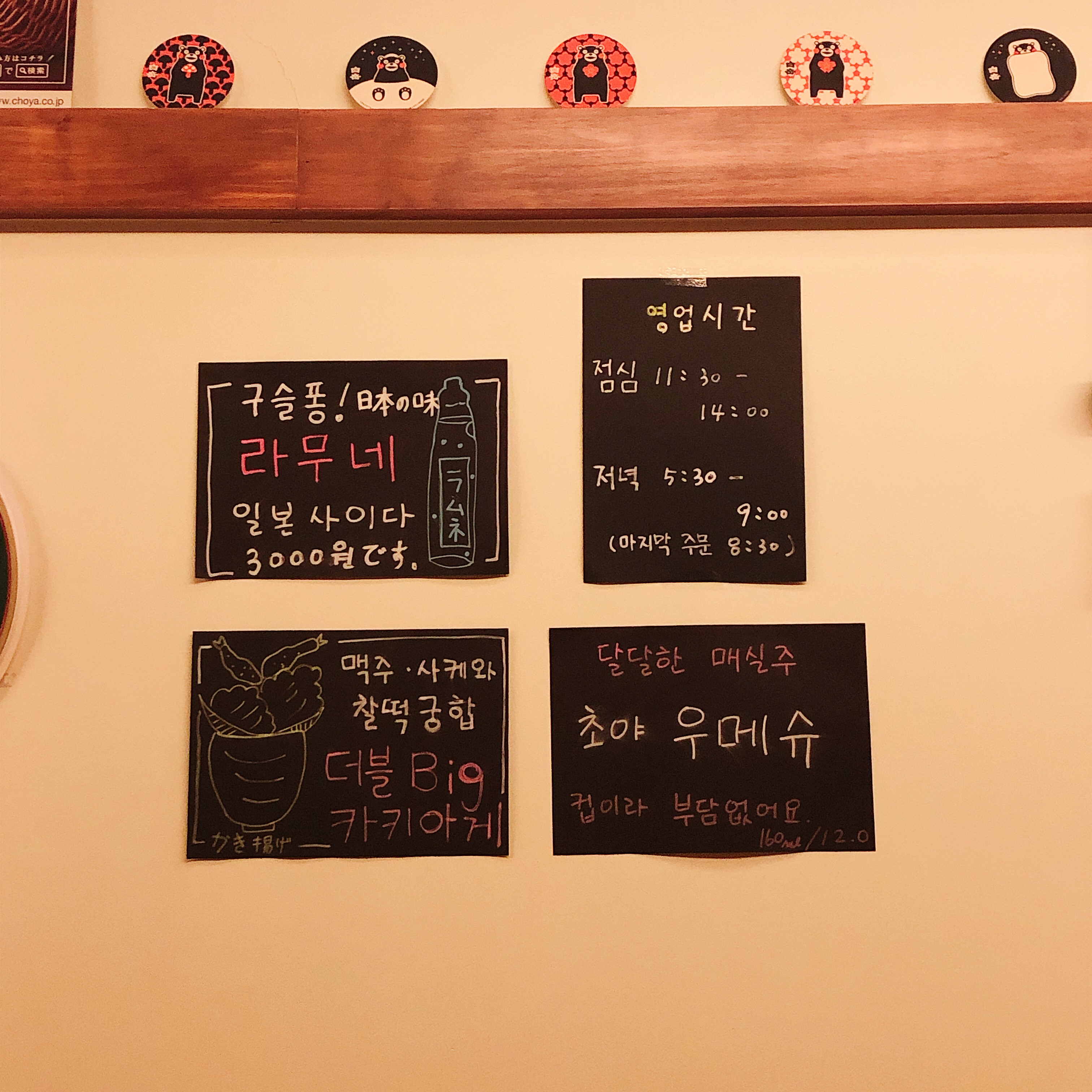일식집 답게 고양이가 자리하고 있습니다. 안내문들이 형광펜으로 귀엽게 쓰여있네요.