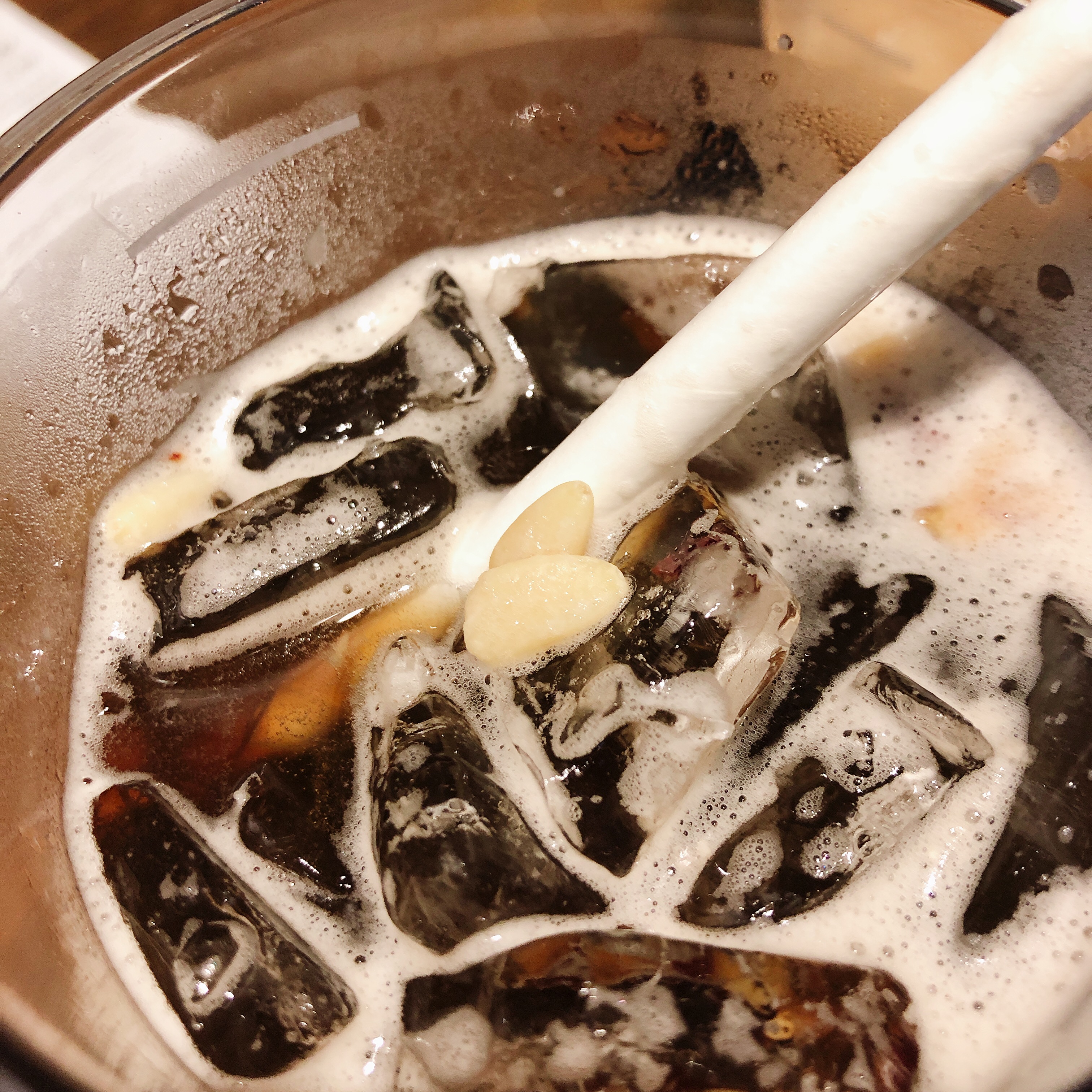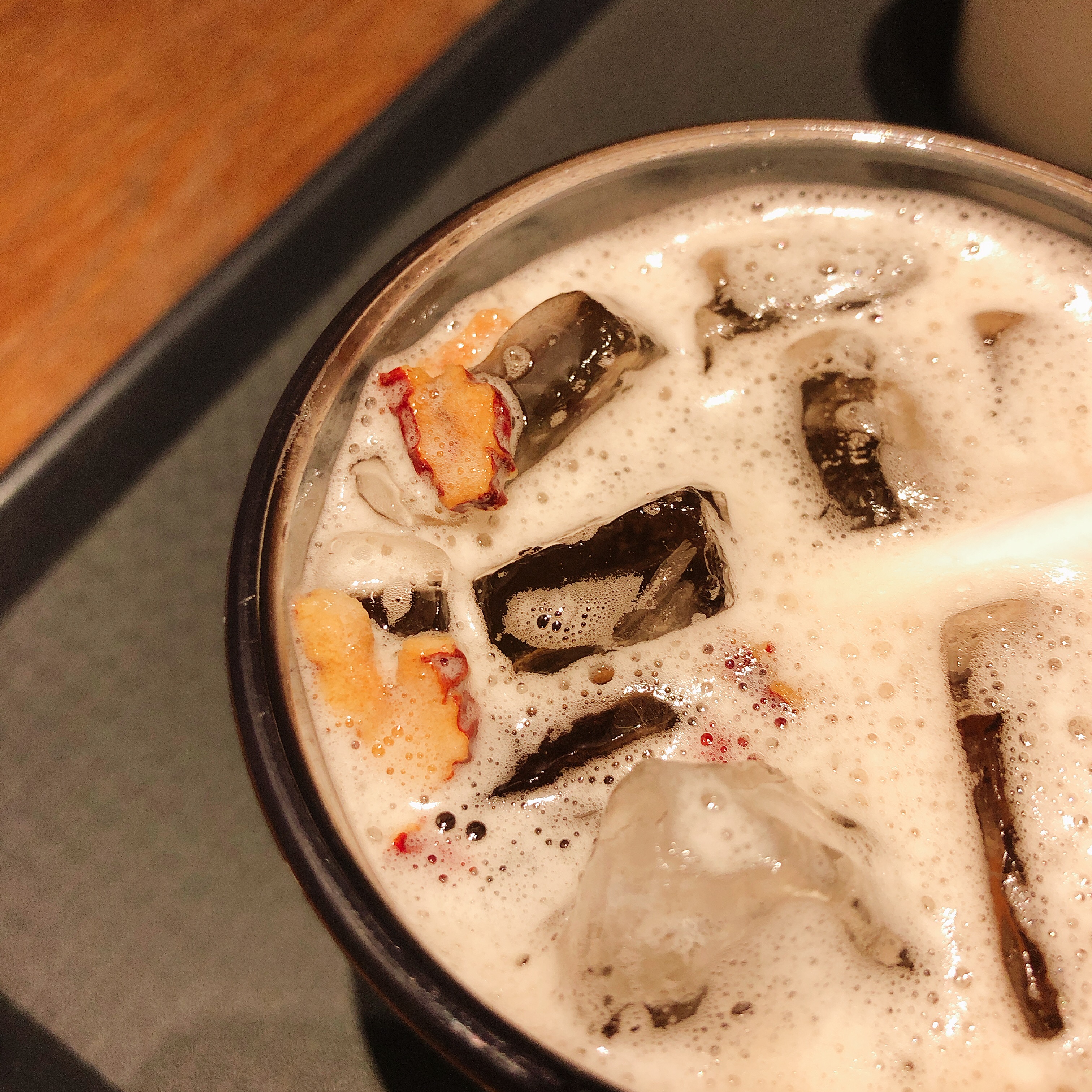 사실 외관은 커피와 그렇게 크게 차이가 나진 않습니다. 다만, 거품이 조금 있습니다. 음료를 좀 더 자세히 들여다보았는데요.