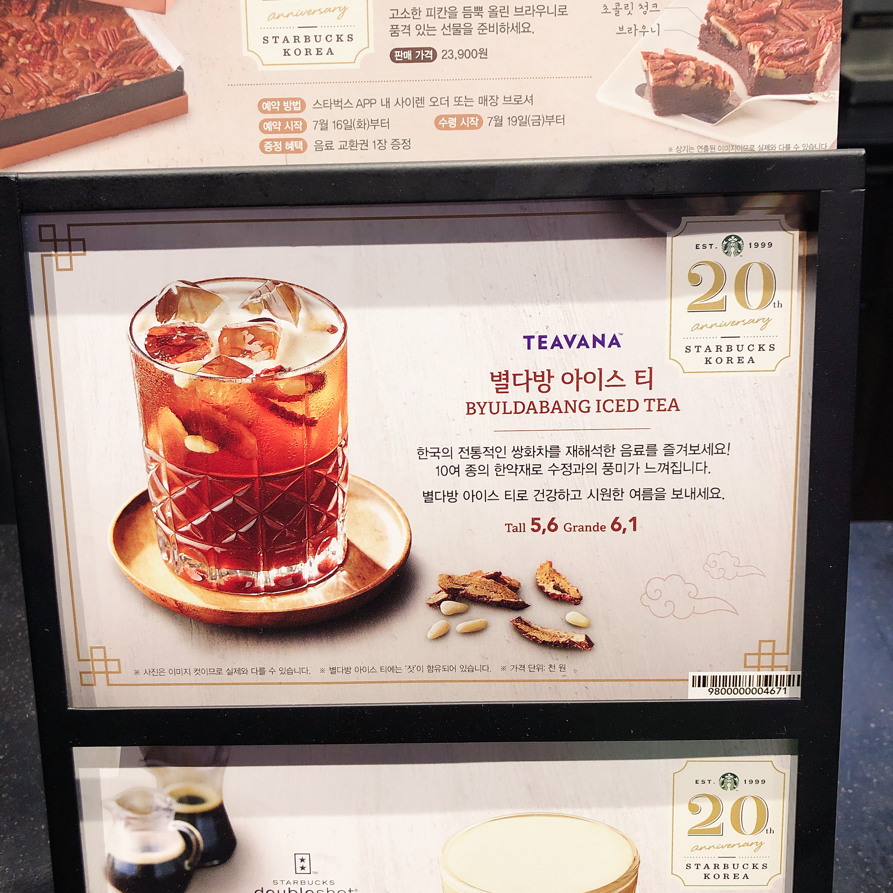 스타벅스는 현지화를 매우 잘하는 국내 진출 기업중 하나죠. 이번에 이 음료도 20주년을 기념으로 한 현지화 정책의 일부라고 볼 수 있겠습니다. 재밌는 상품인것 같습니다.