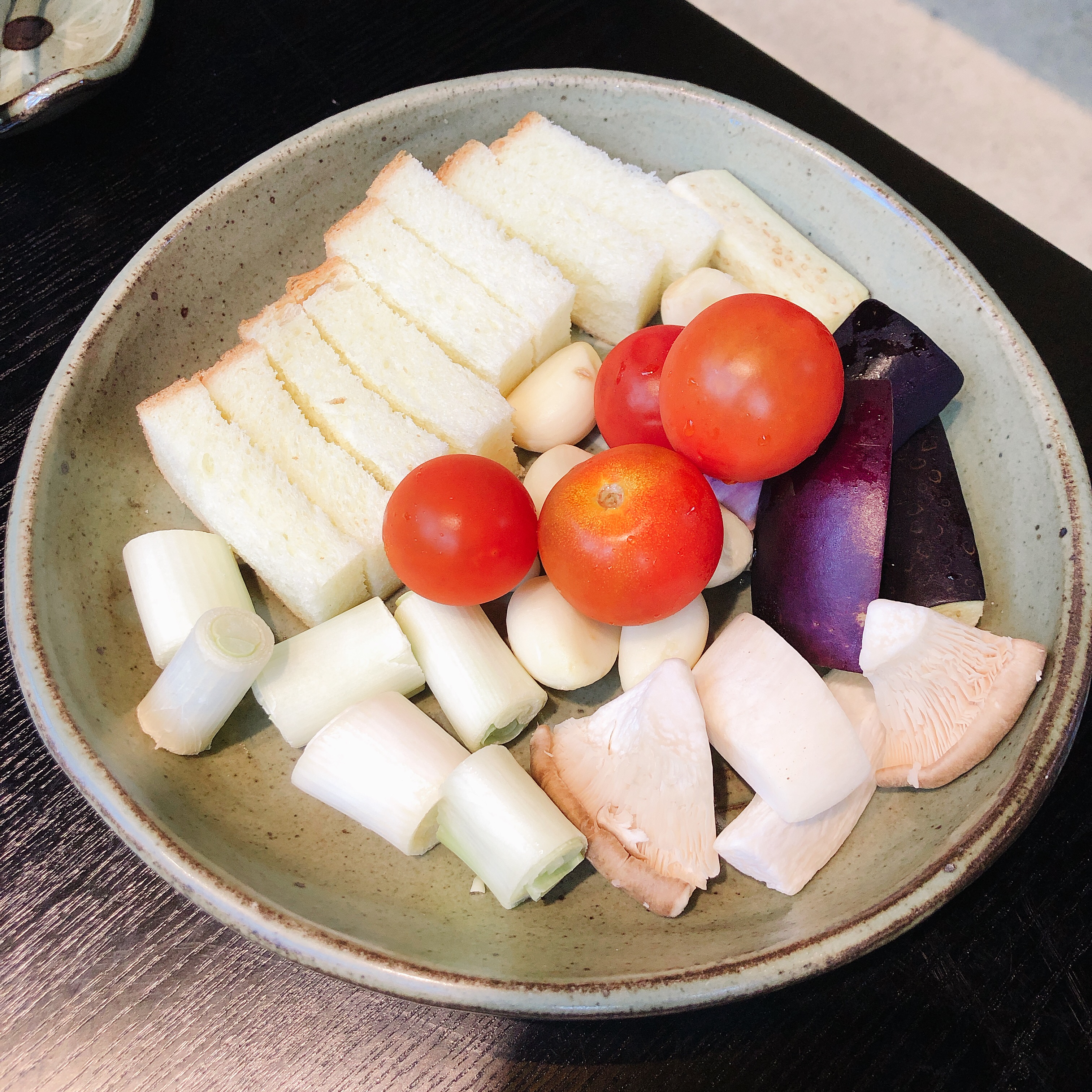 특이하게 요런것들을 구워주십니다. 마늘, 파, 버섯, 토마토, 양파, 빵(?) 입니다.