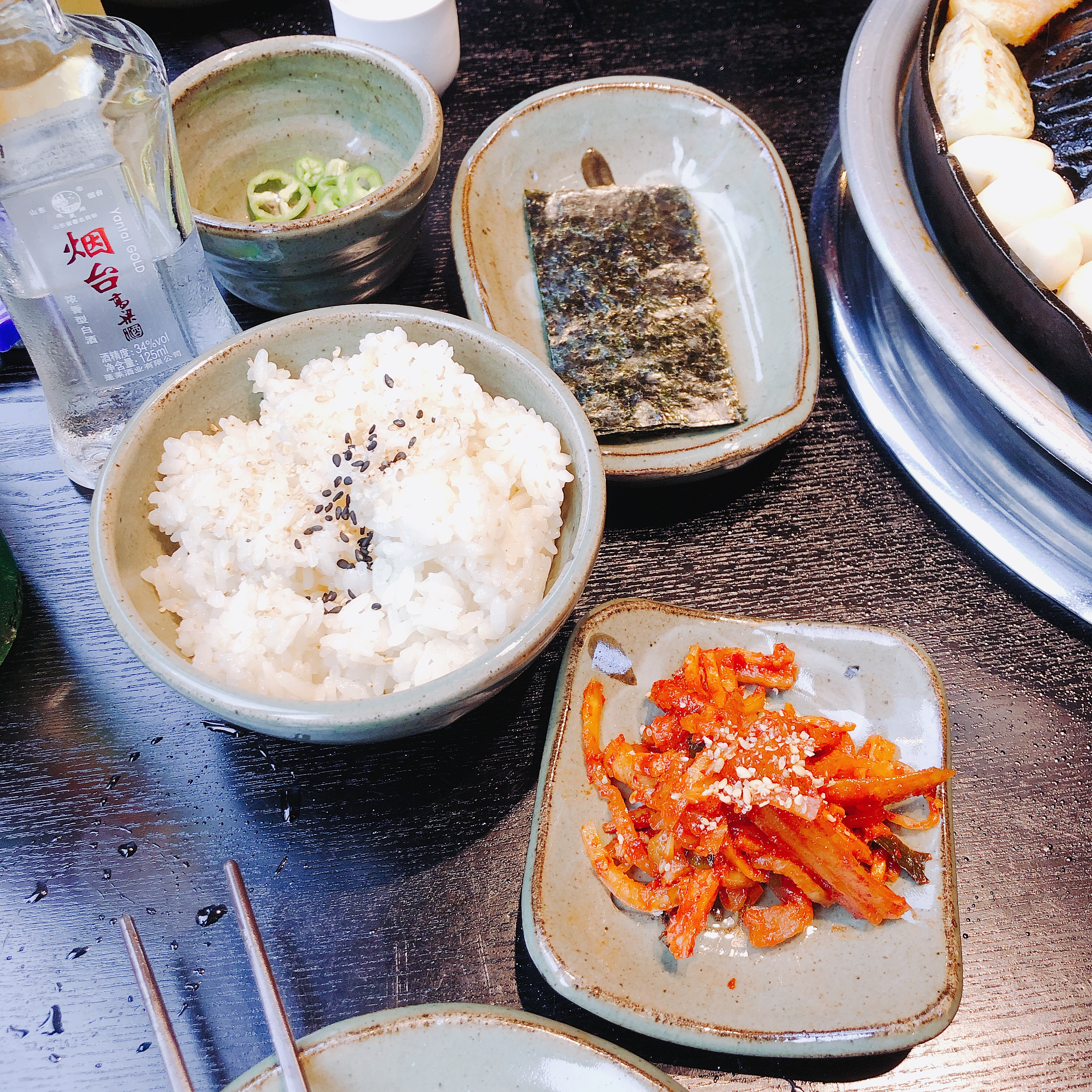 마늘밥의 경우 밥과 김에 싸먹을 수 있는 찬이 같이 나옵니다. 마치 충무김밥같달까요? 고기와 같이 김에 싸먹으면 맛있습니다. 참고로 마늘밥이 특이한 맛이 나는 것은 아니고요. 그냥 밥입니다.