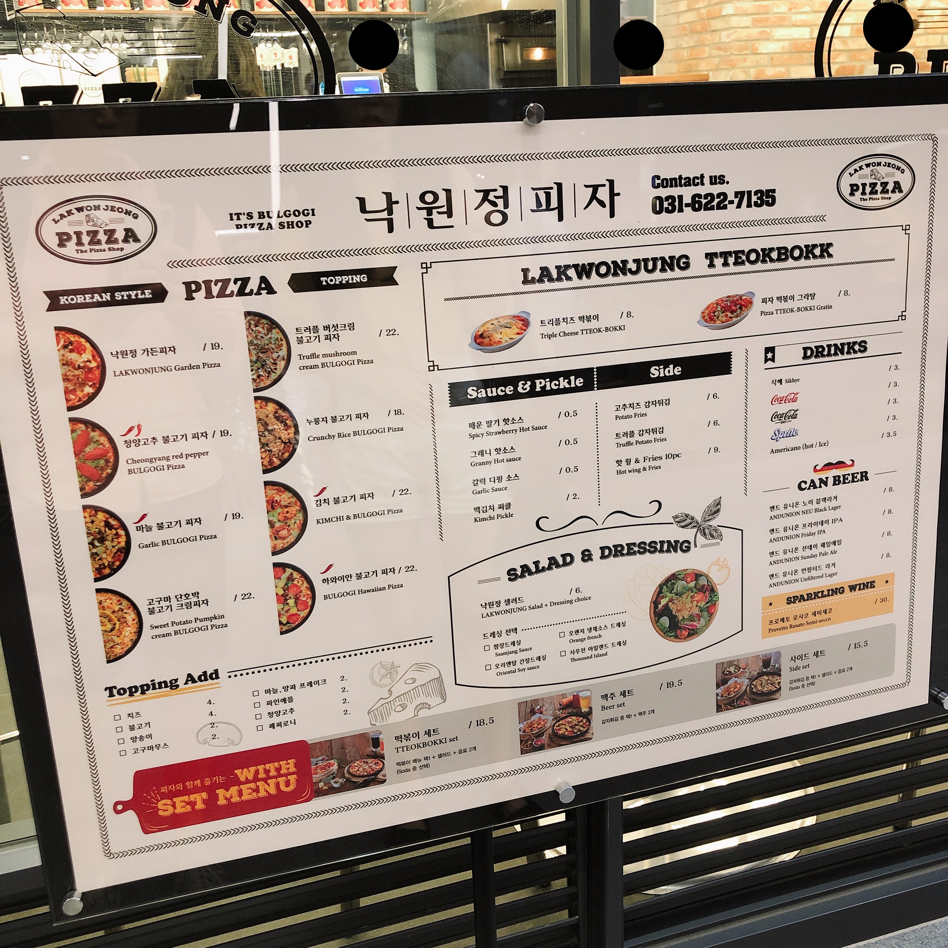 메뉴판은 이렇습니다. 피자 크기가 작은편인데요. 단순히 크기로만 비교하자면 가격이 싼편은 아닙니다. 다만 아래서도 얘기하겠지만 맛이 만족스럽기 때문에 감수할만한 부분입니다.