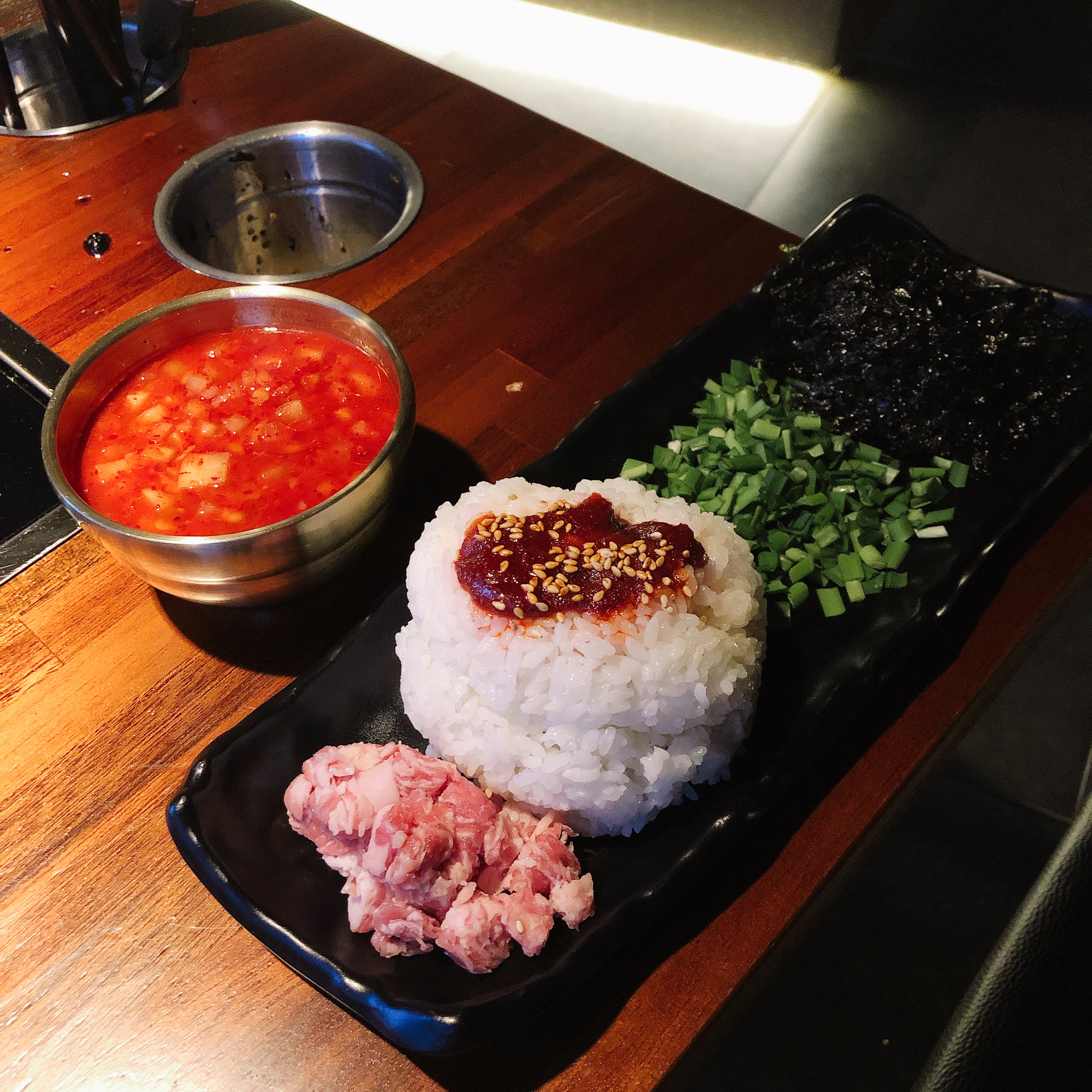 한국인이라면 반드시 고기 식사 후 밥을 먹어야하죠? 저희도 역시 그렇습니다. 깍두기 볶음밥을 주문했는데요. 위 처럼 깍두기 소스와 차돌박이 조각들이 나옵니다.