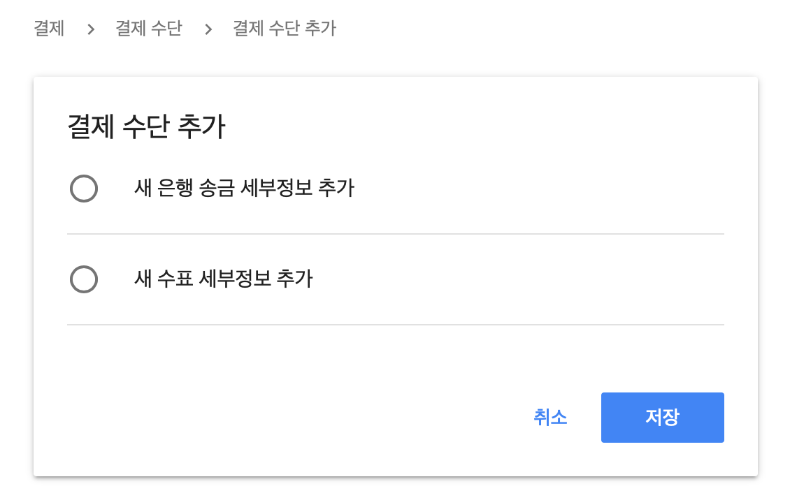 위 화면에서 '새 은행 송금 세부정보 추가'를 눌러봅시다. 계좌로 받겠다는 의미입니다.