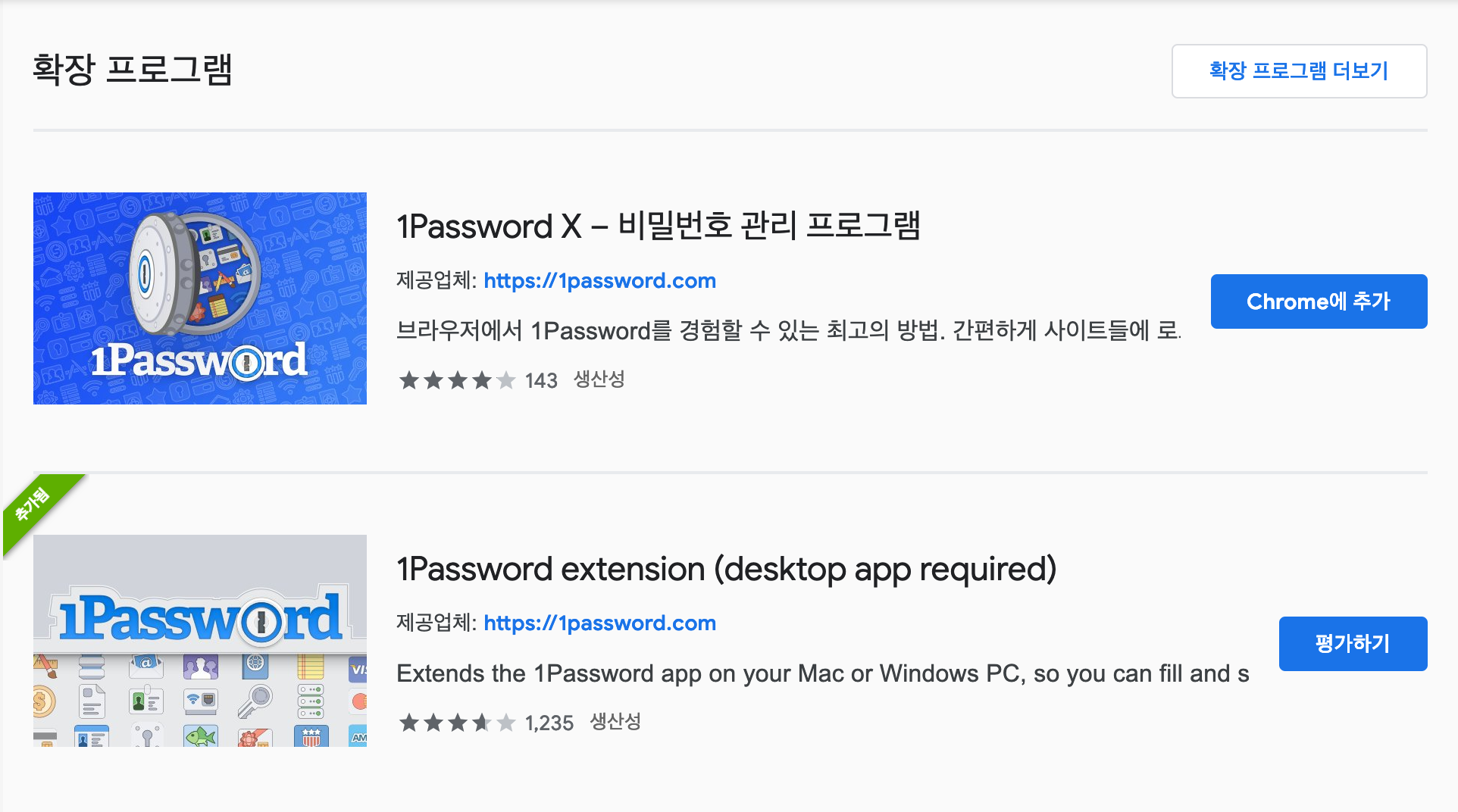 1Password 관련 확장 프로그램을 설치합니다.