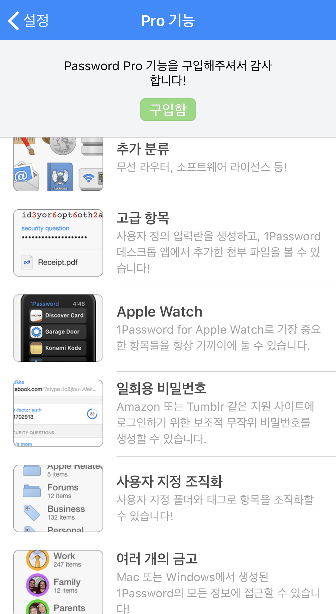 1Password 4등의 구 버전에서는 무료로 사용할 수 있다는 점 등이 장점입니다.