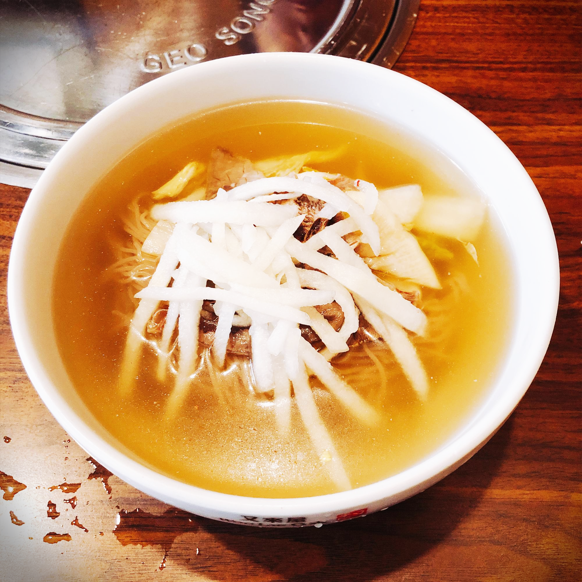 위에 차가운 곰탕 육수에 면을 말아먹는 느낌이라고 표현해놨는데요. 어떻게 소고기 육수를 차갑게 해도 기름기가 없는건지.. 신기합니다. 그게 이 집의 노하우겠죠.