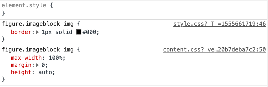 본문 내 이미지의 경우 "figure.imageblock img"의 노드 정보를 갖는다는 점을 알 수 있습니다. 여기에 border 속성을 지정해주면 자동으로 적용이 되겠습니다.