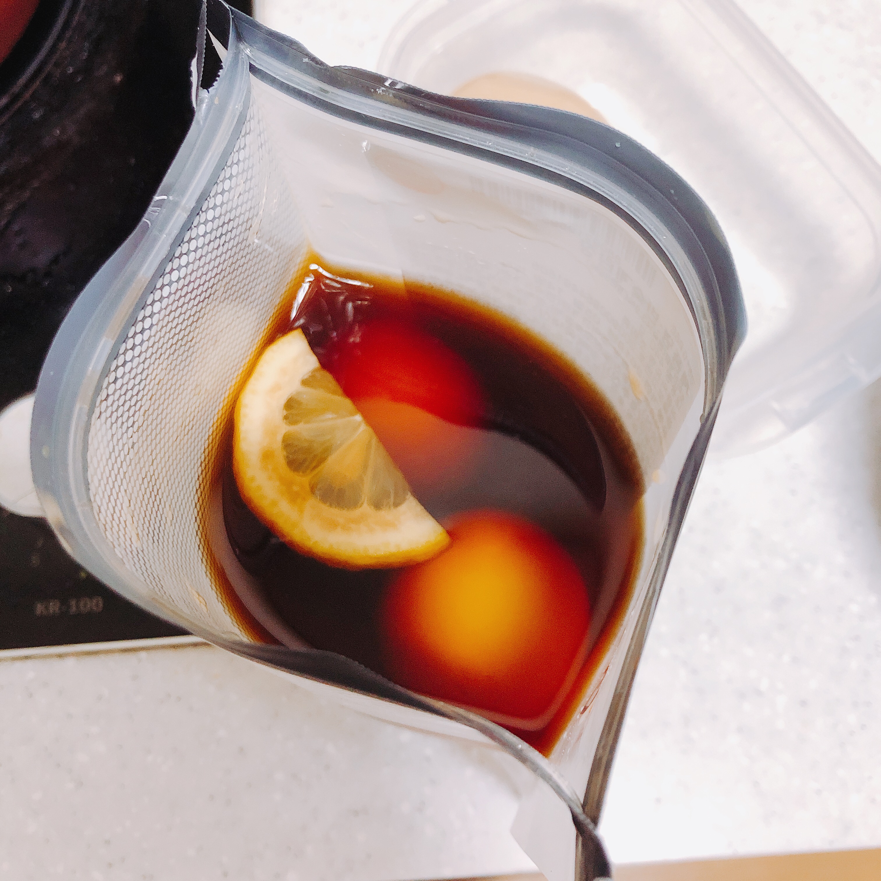 반숙계란장 또한 처음으로 주문해봅니다. 레몬이 들어있습니다. 전 한개만 쏙 꺼내 먹었는데요. 역시 반숙의 식감과 짭짤함이 일품입니다. 왜 이게 요즘 유행인지 알 것 같습니다.