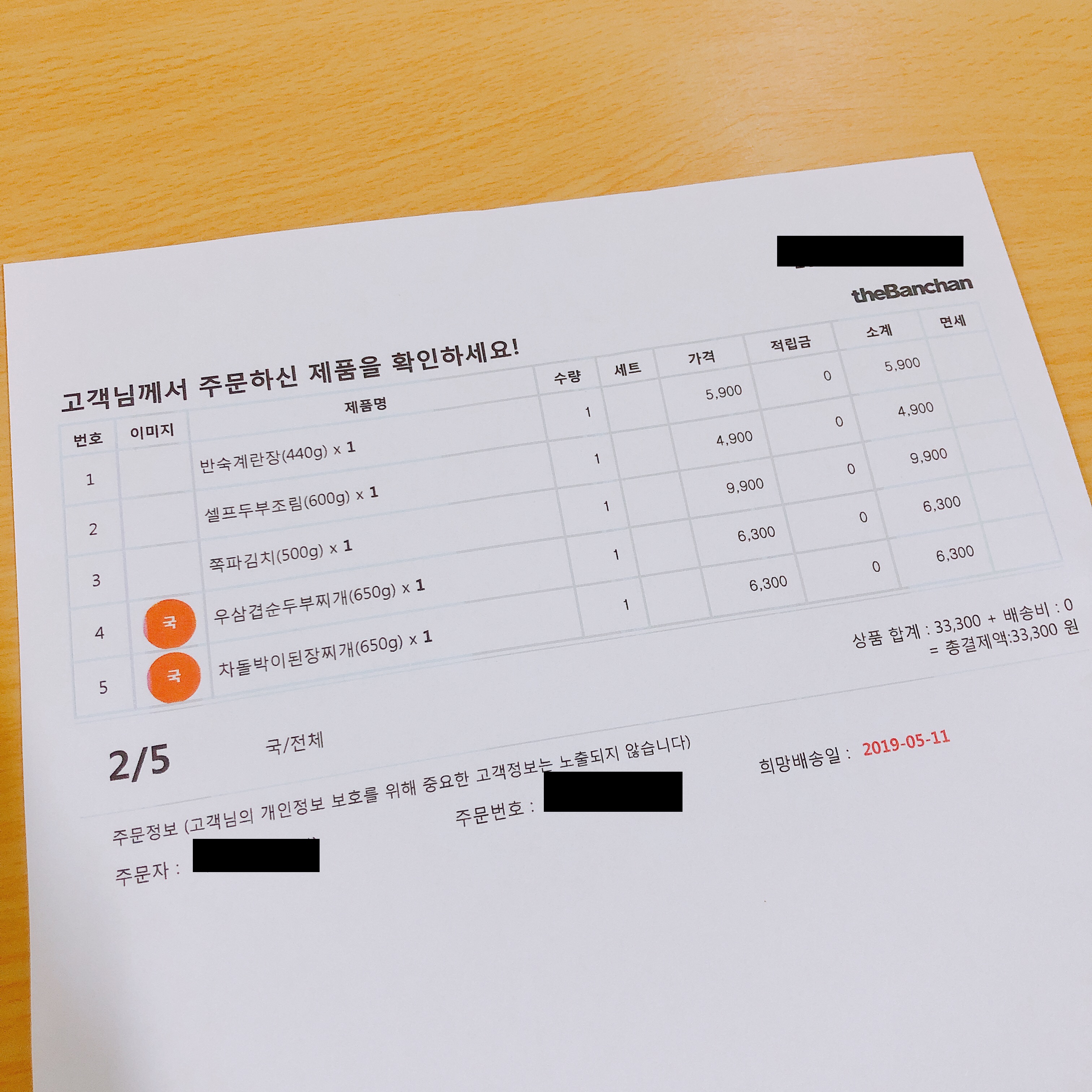 주문 내역이 프린트 되어 옵니다. 짬뽕탕, 볶음우동, 월남쌈 등 조리에 설명이 필요한 음식을 주문했다면 안내문도 넣어줍니다. 이미지가 들어있는 설명서이기 때문에 조리시 큰 도움이 됩니다. 다만 친절한 점 이긴 하나, 결국은 이것도 한 번 보고 난 후 즉시 쓰레기가 되는터라 앱이나 웹으로 안내할 수도 있지 않나 생각해봅니다. 물론 스마트폰을 이용하기 어려워하는 분들이 반찬을 주문한다면 조금 어려울 수도 있겠지만 요즘 신선식품 서비스를 사용하는 유저들 이라면 스마트폰을 잘 이용할만한 고객들일 것 같기에 고려해봄직하지 않나 하는 아쉬움이 있습니다.