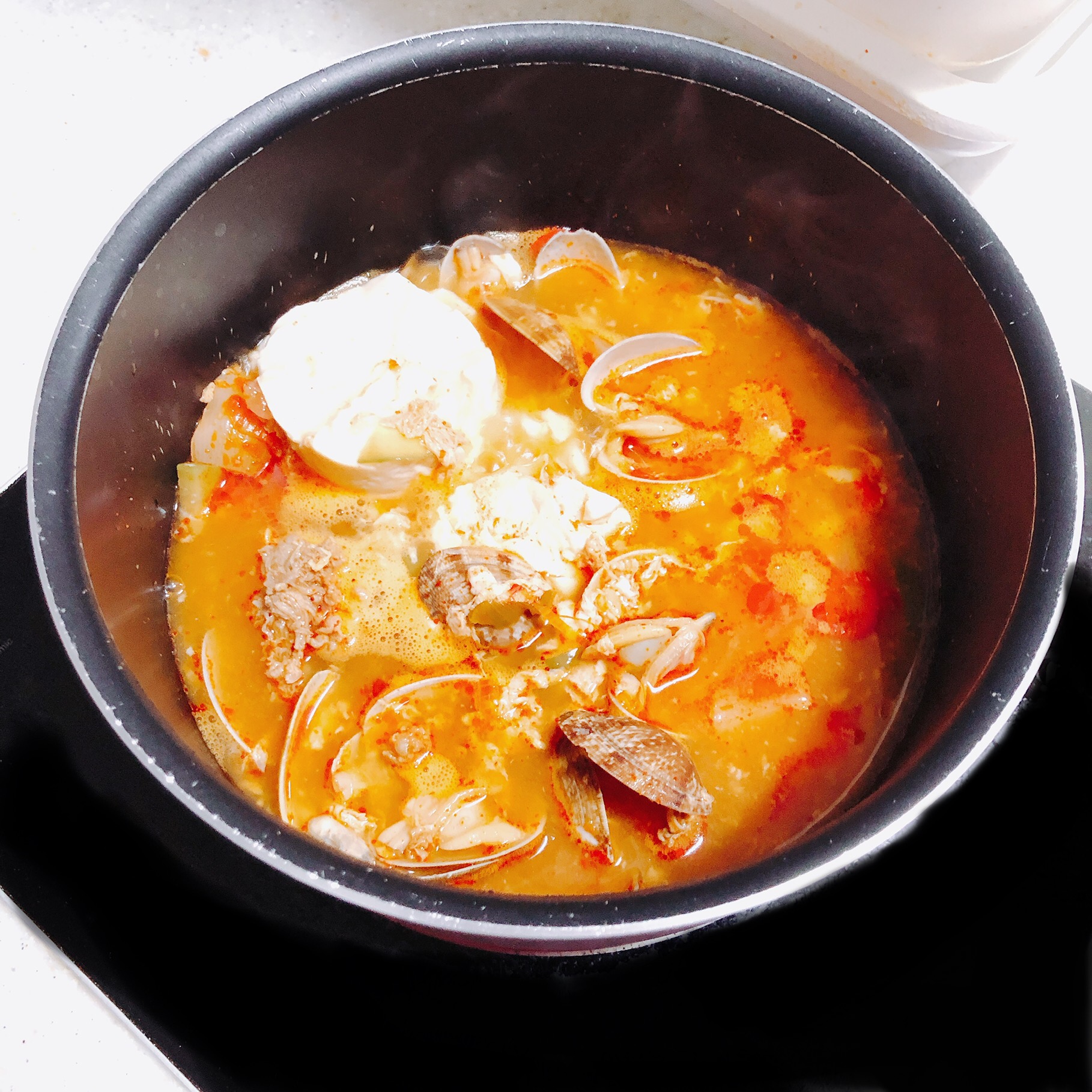사진상으론 잘 표현이 안되었지만 건더기가 굉장히 실합니다. 순두부 상태도 좋고요. 무엇보다 특이한 점은 우삼겹 순두부 찌개인데 조개가 굉장히 많다는 점 입니다. 6,300원에 이정도 퀄리티이면서 2인이 딱 적당히 먹을 정도면 훌륭합니다.