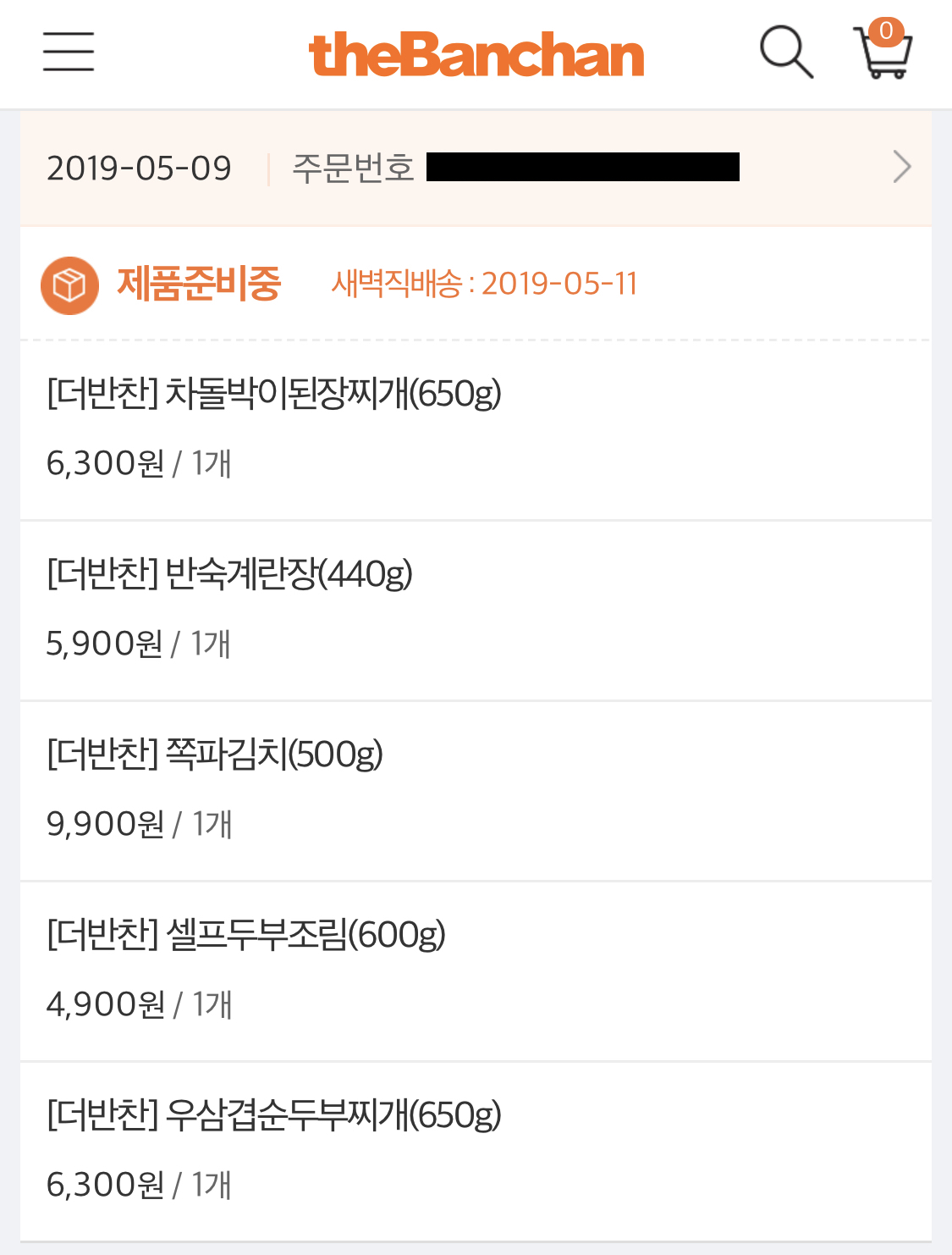 반찬 도착