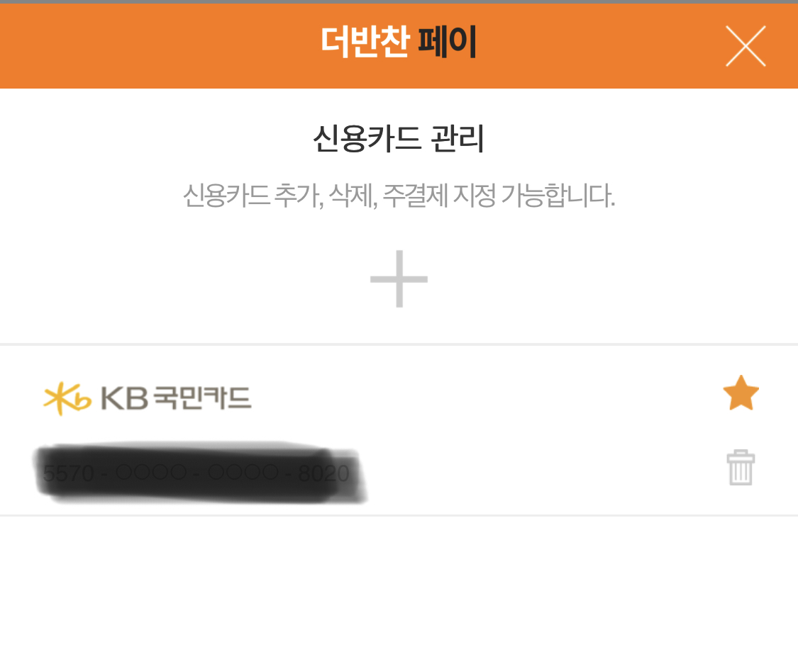 더반찬 페이에 신용카드를 등록하긴 했으나 카카오페이나 페이코를 더 많이 쓰게되는 것 같습니다.