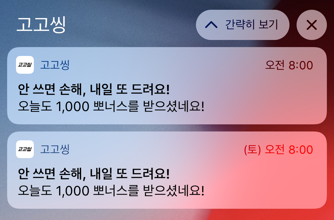 고고씽은 아침 8시마다 1,000 포인트를 지급하는 이벤트 중 인데요. 이제 저의 경우는 매우 쓸모가 없게 되었습니다.