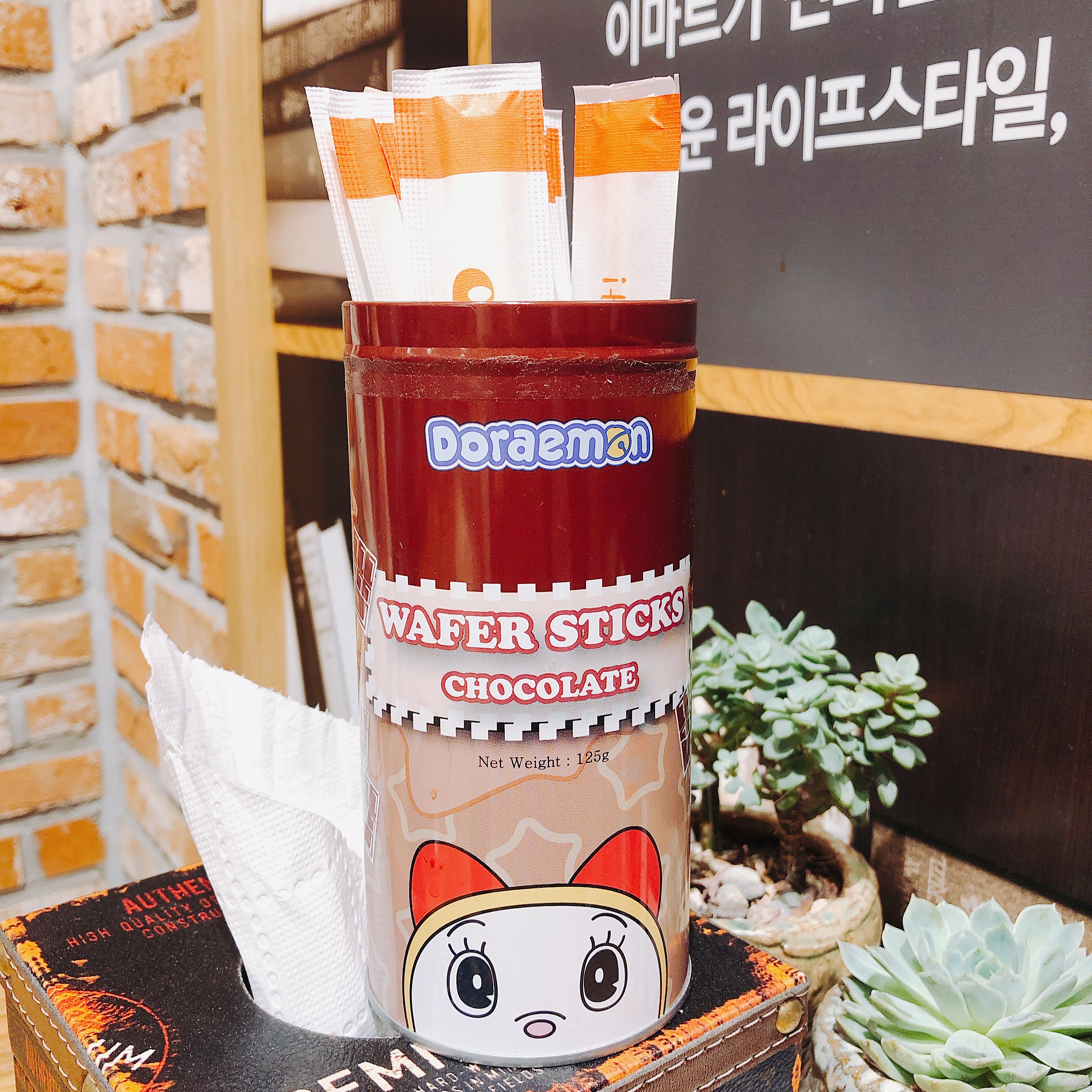 뜬금없게도 젓가락 꽂이로 있는 사용되고 있는 도라미가 있어 찍어보았습니다. 매우 실망스런 커피였지만 귀여워서 참기로 했습니다.