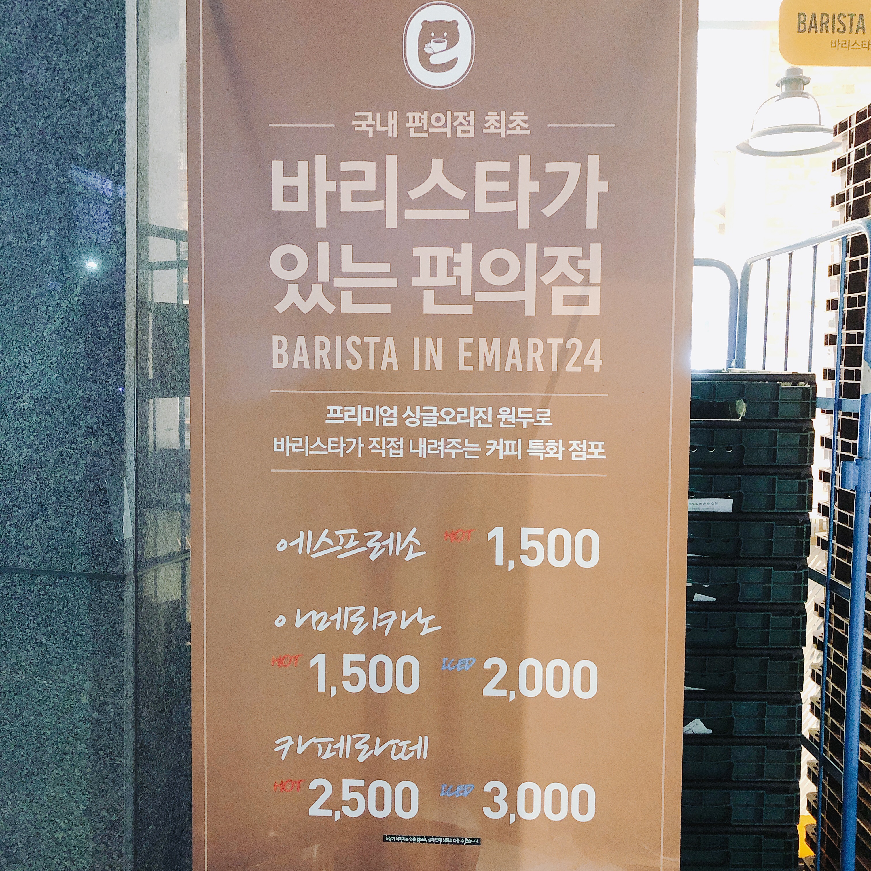 그래서 오늘은 싸고 맛있는 커피를 마셔보기 위해 주변을 둘러보았고, 마침 바리스타가 있는 편의점을 발견했습니다. 바로 이마트24 입니다.