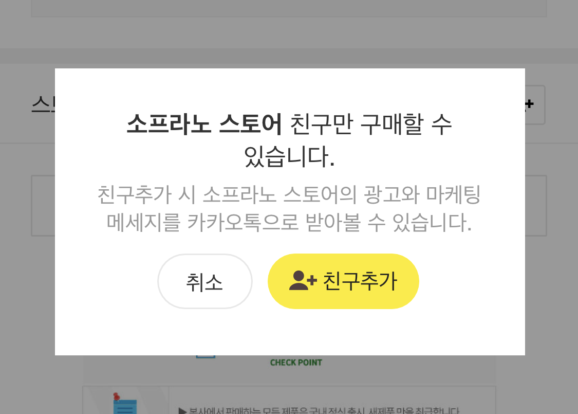 이 상품의 경우 스토어의 플러스 친구를 추가해야 구매가 가능한 상품입니다. 맘에 안들면 나중에 차단하는 방법도 있으니 일단 쿨하게 친구 추가를 눌러주도록 합시다.