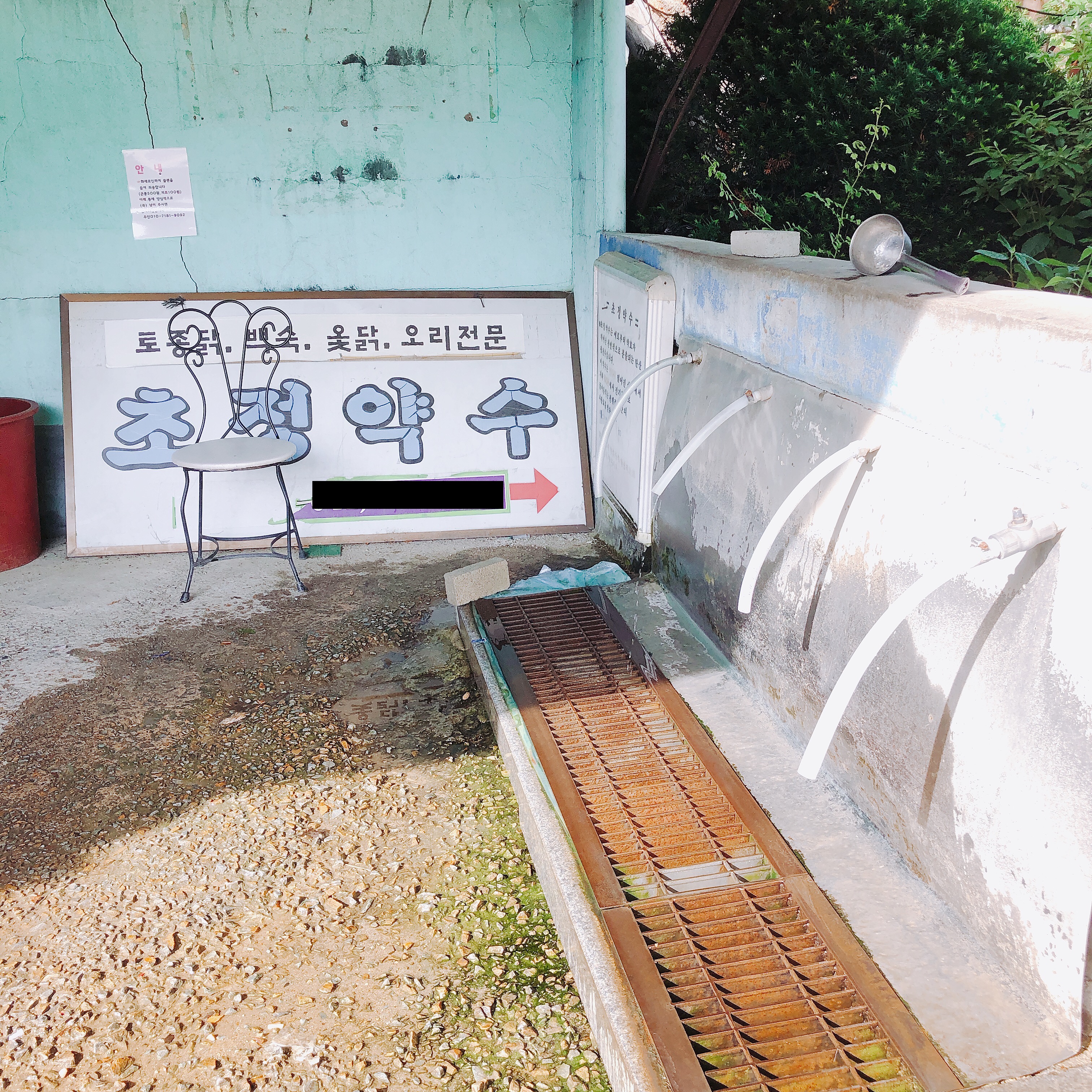 하지만 안타깝게도 몇 년 전 그 식당이 화재로 소실되었습니다. 그래서 지금은 약수터만 운영 중 입니다. 참고로 더 안타까운 것은 세종시가 되면서 이 마을이 개발 제한구역으로 묶이는 바람에 재건도 어렵다고 하네요. (아버지 발 뇌피셜)