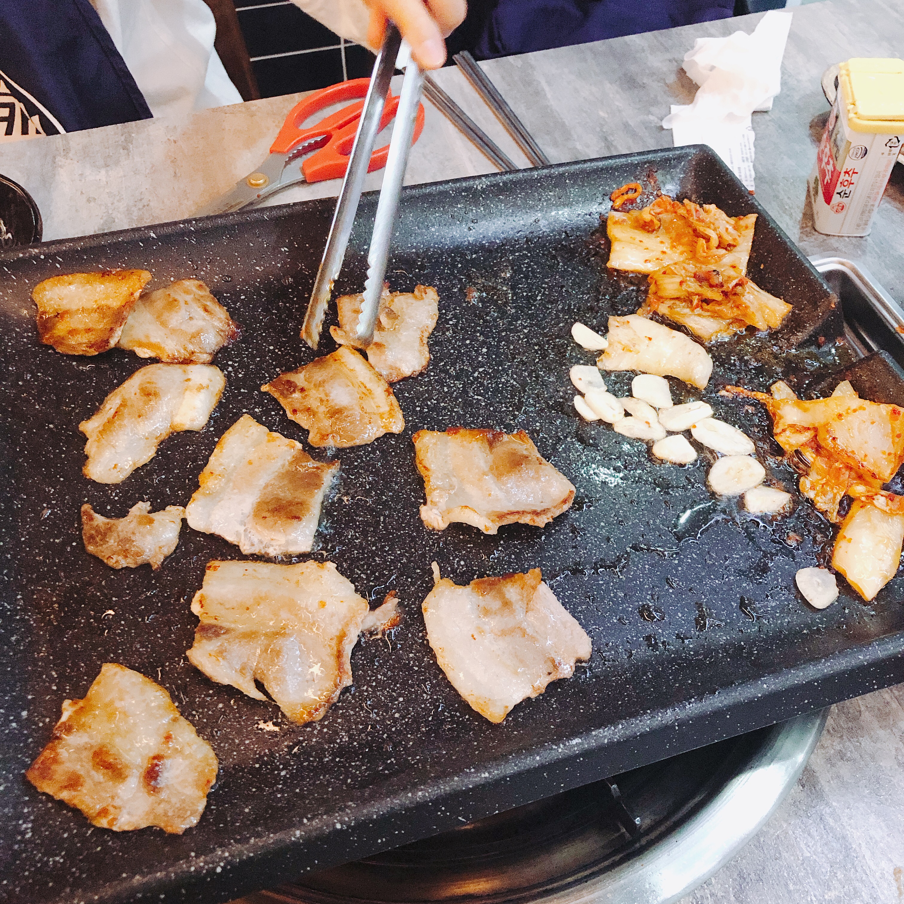 근데 이게 기분탓인지 진짜인진 모르겠으나, 고기가 너무 뜨겁더군요. 당연히 불판에 구웠으니 그렇겠지라고 어이없게 생각하실 수도 있겠습니다만 진짜 너무 뜨거워서 입천장 다 까질뻔했습니다. 이게 불판 특성인건지 냉삼 특성인건지 잘 모르겠네요.